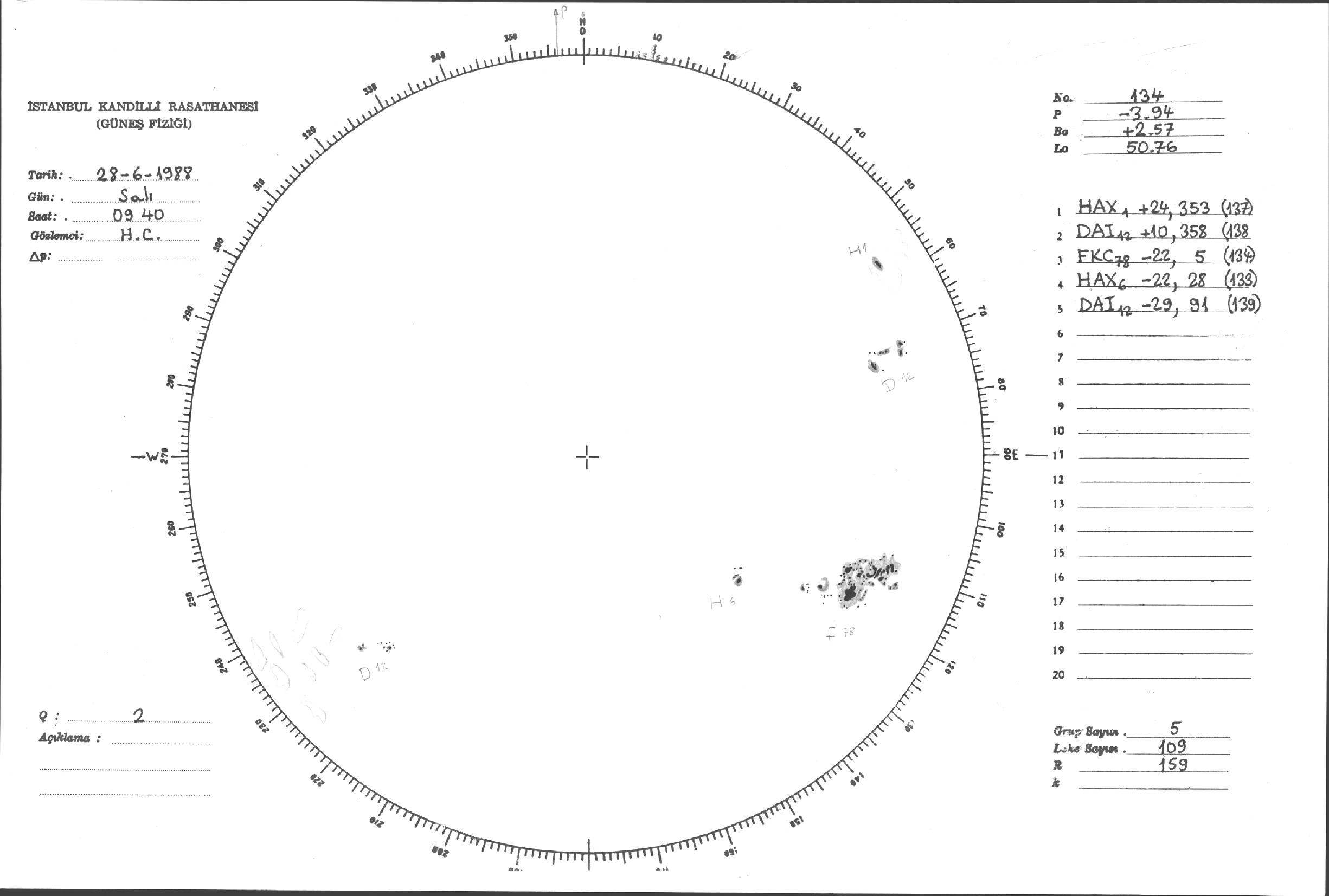 Güneş Lekesi Çizimi - 28.06.1988