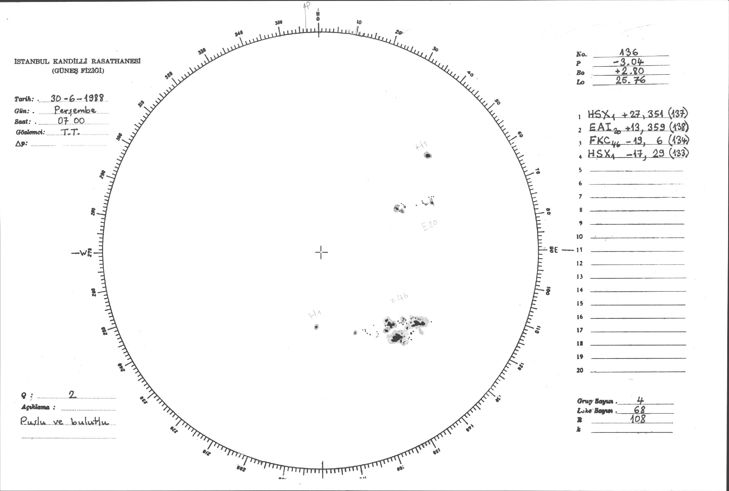 Güneş Lekesi Çizimi - 30.06.1988