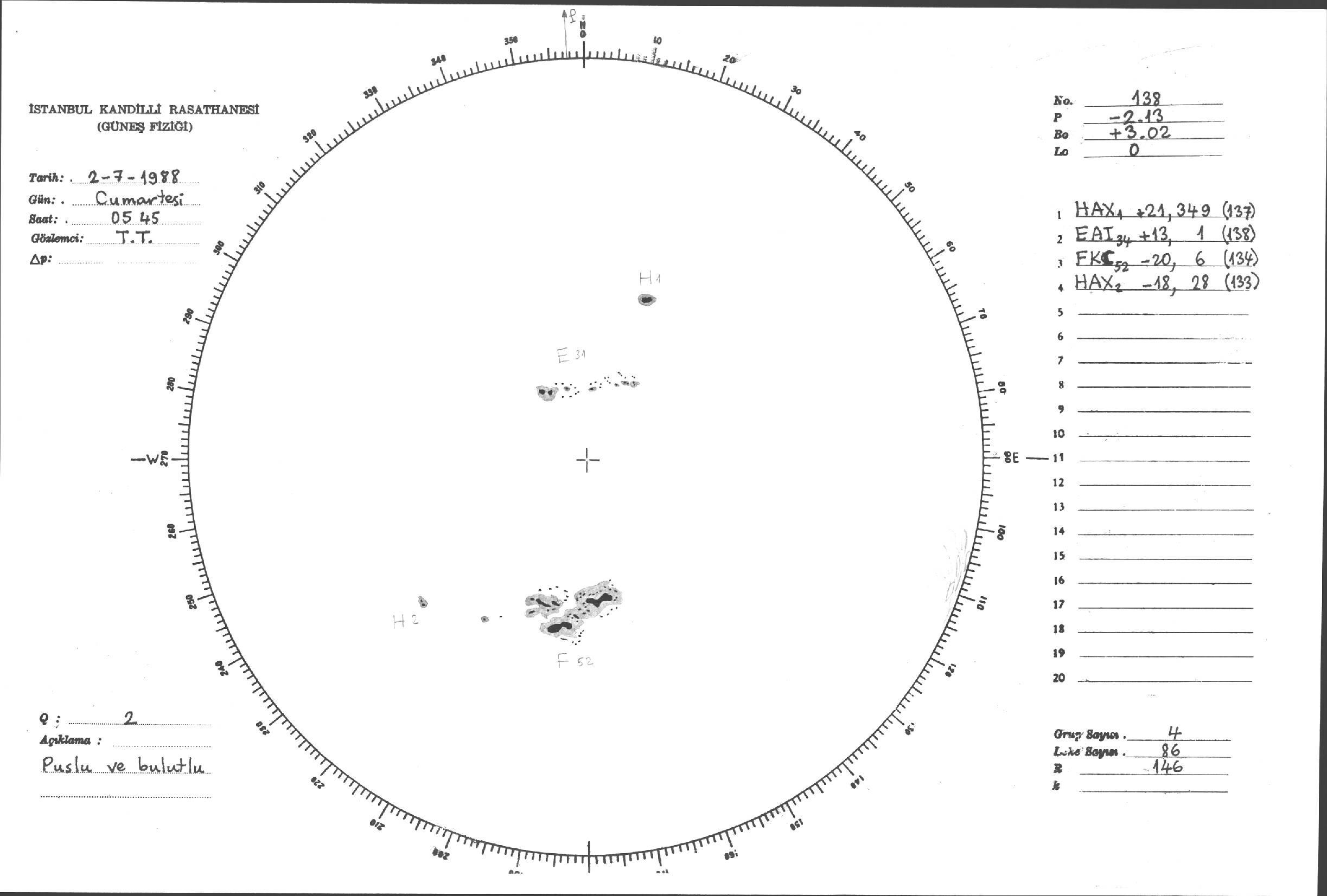 Güneş Lekesi Çizimi - 02.07.1988