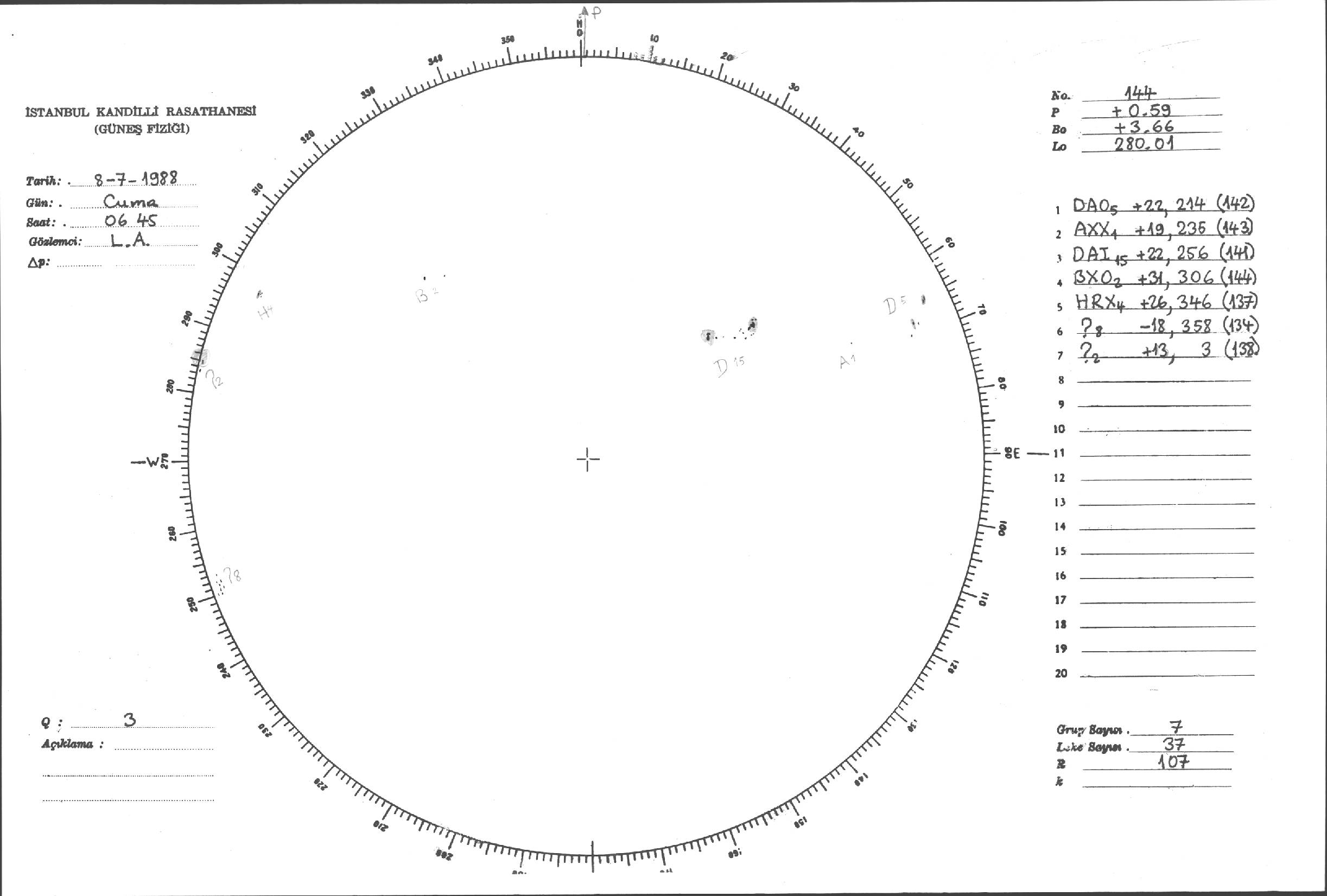 Güneş Lekesi Çizimi - 08.07.1988