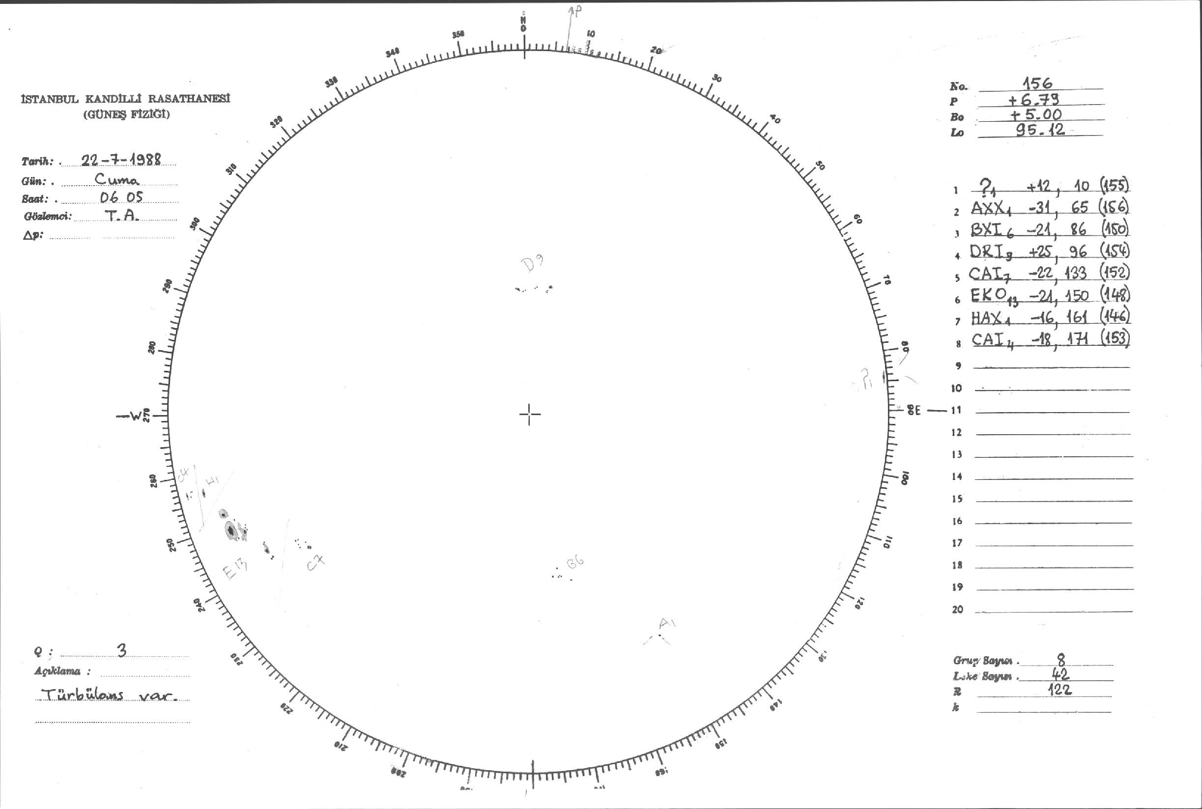Güneş Lekesi Çizimi - 22.07.1988