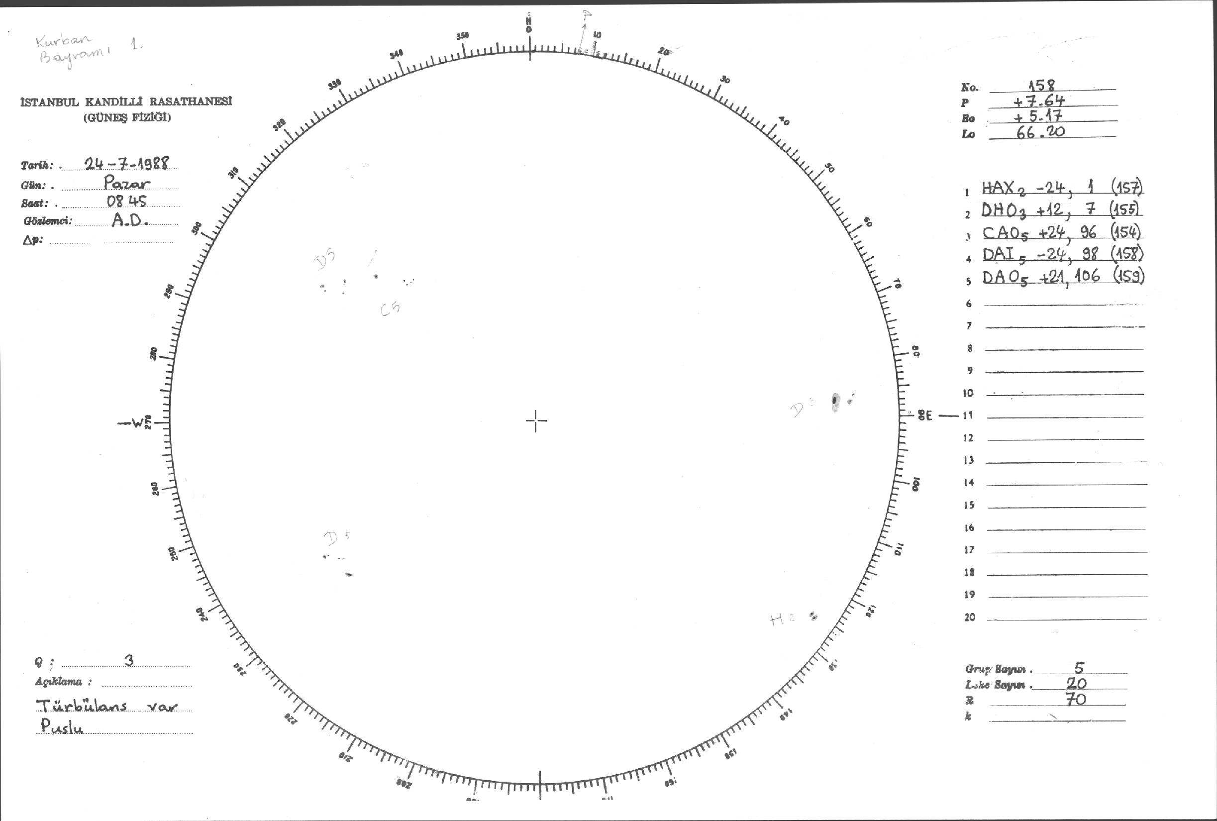 Güneş Lekesi Çizimi - 24.07.1988