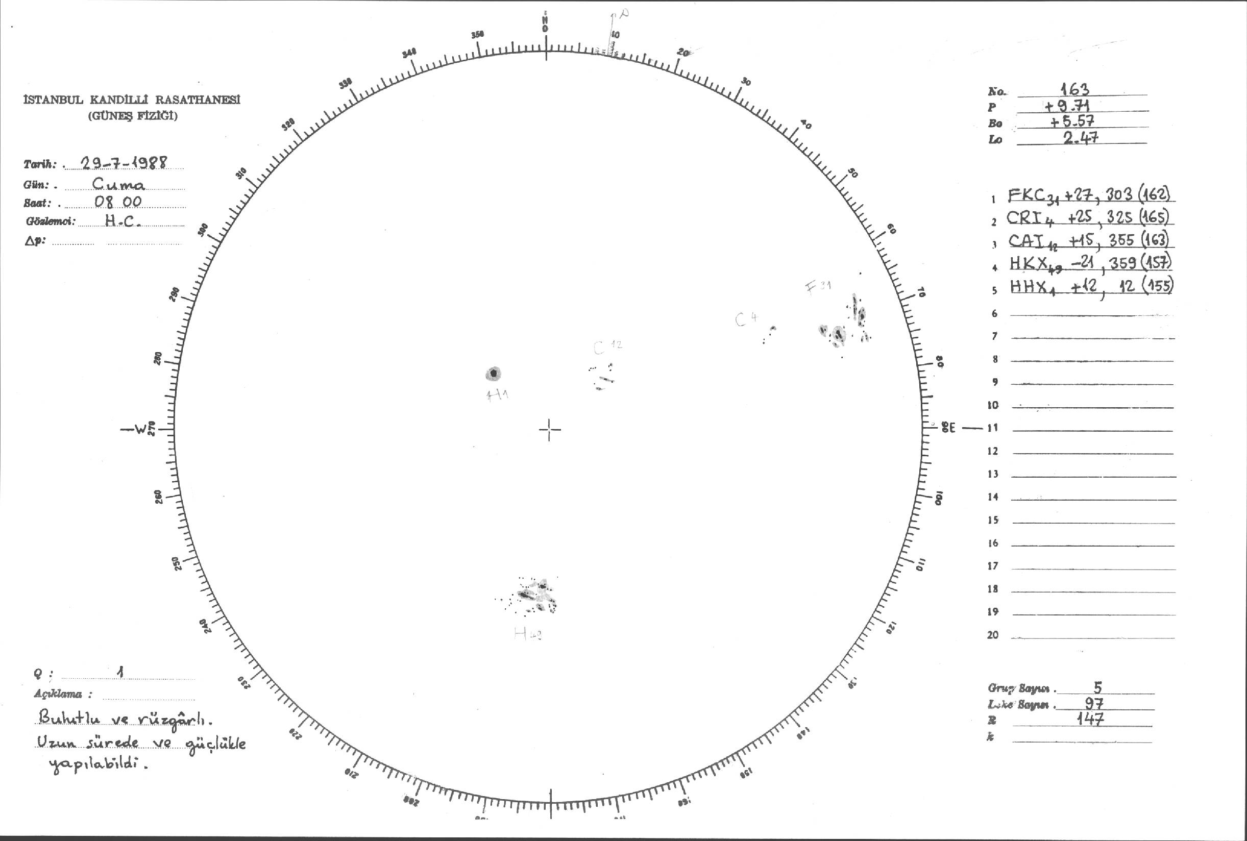 Güneş Lekesi Çizimi - 29.07.1988
