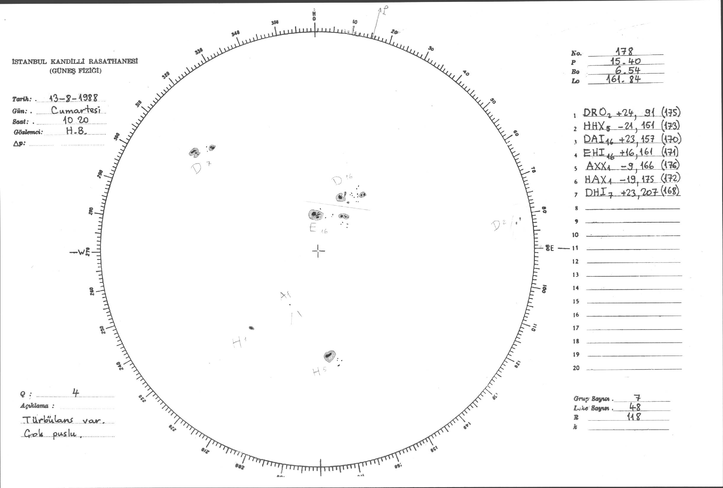 Güneş Lekesi Çizimi - 13.08.1988