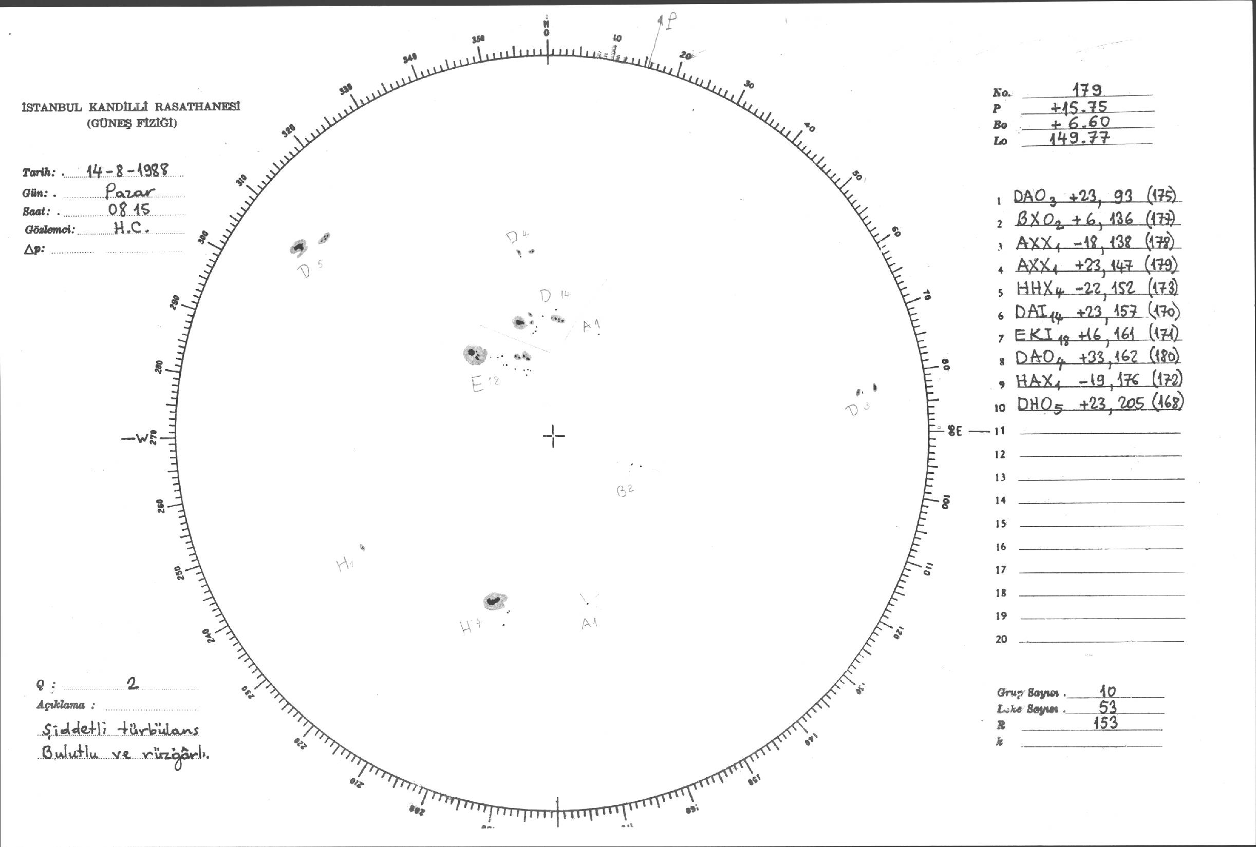 Güneş Lekesi Çizimi - 14.08.1988
