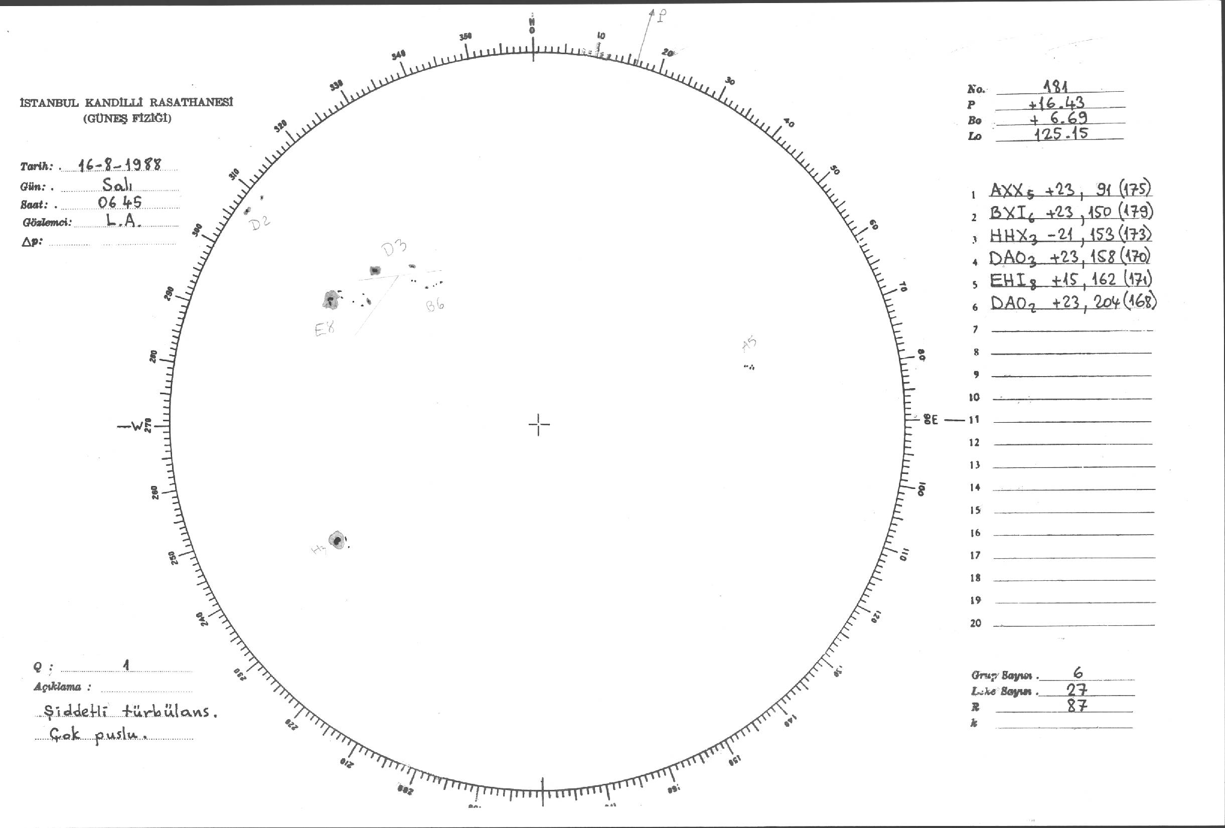 Güneş Lekesi Çizimi - 16.08.1988