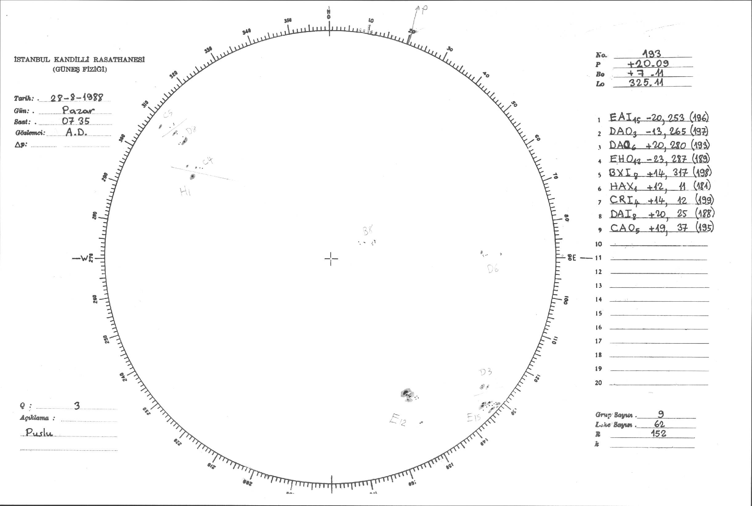 Güneş Lekesi Çizimi - 28.08.1988