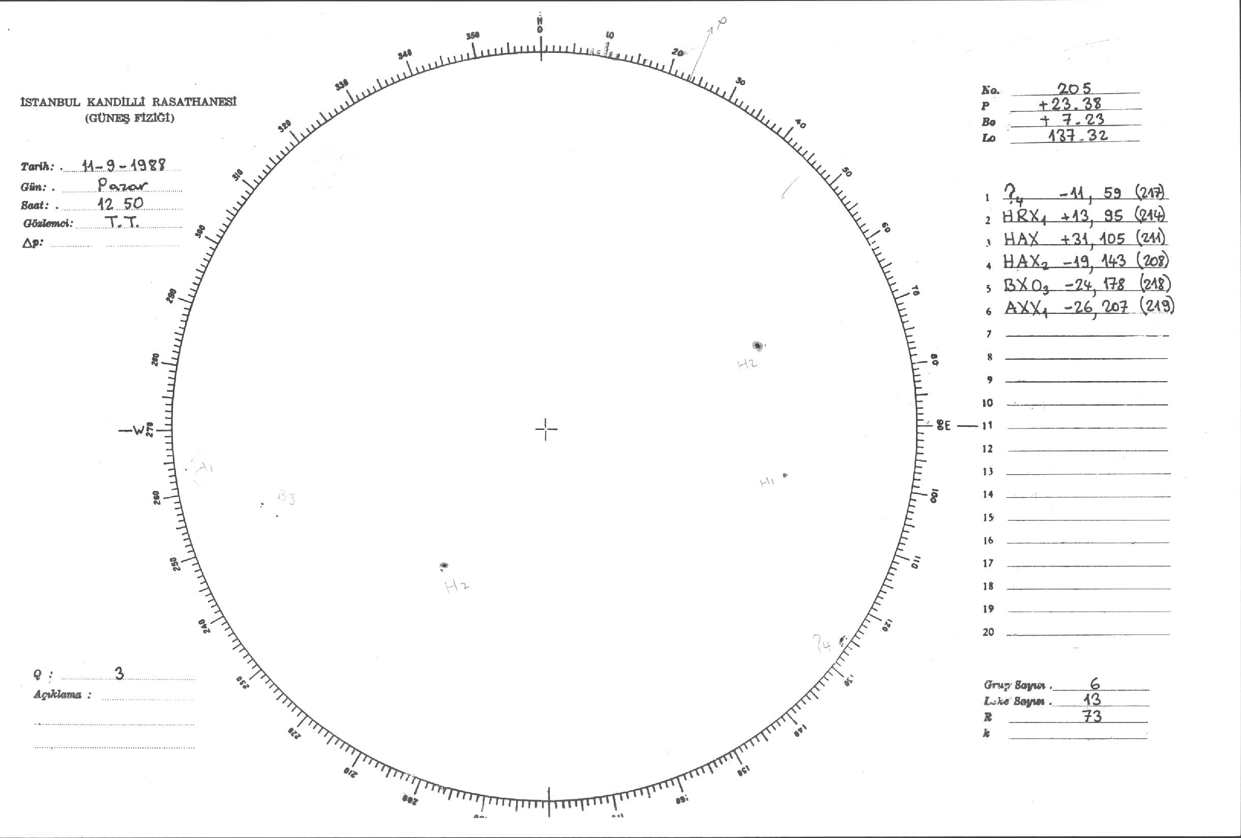 Güneş Lekesi Çizimi - 11.09.1988