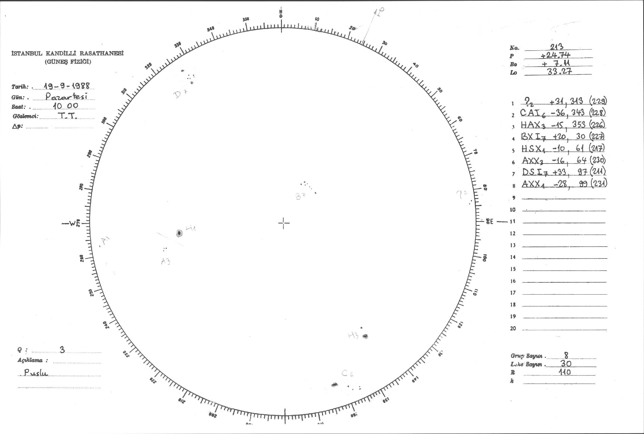 Güneş Lekesi Çizimi - 19.09.1988