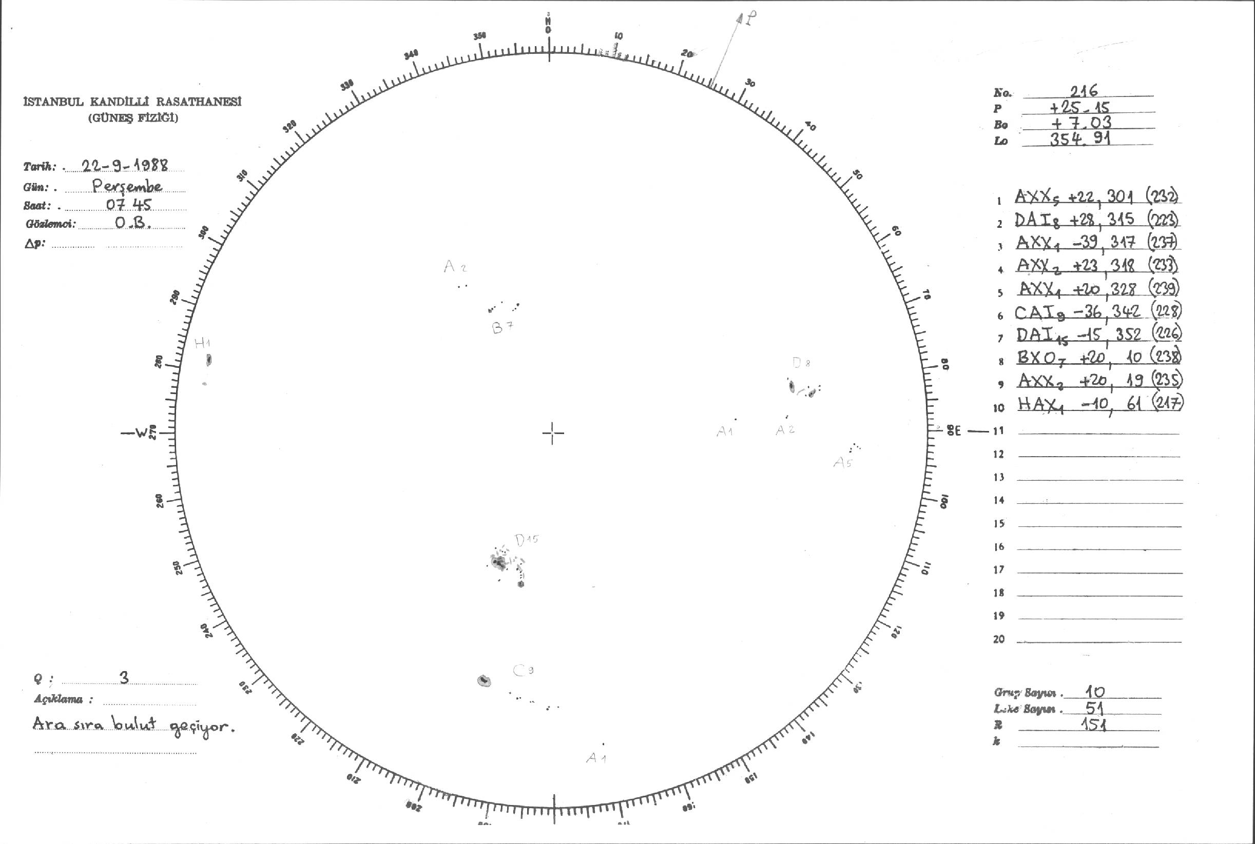 Güneş Lekesi Çizimi - 22.09.1988