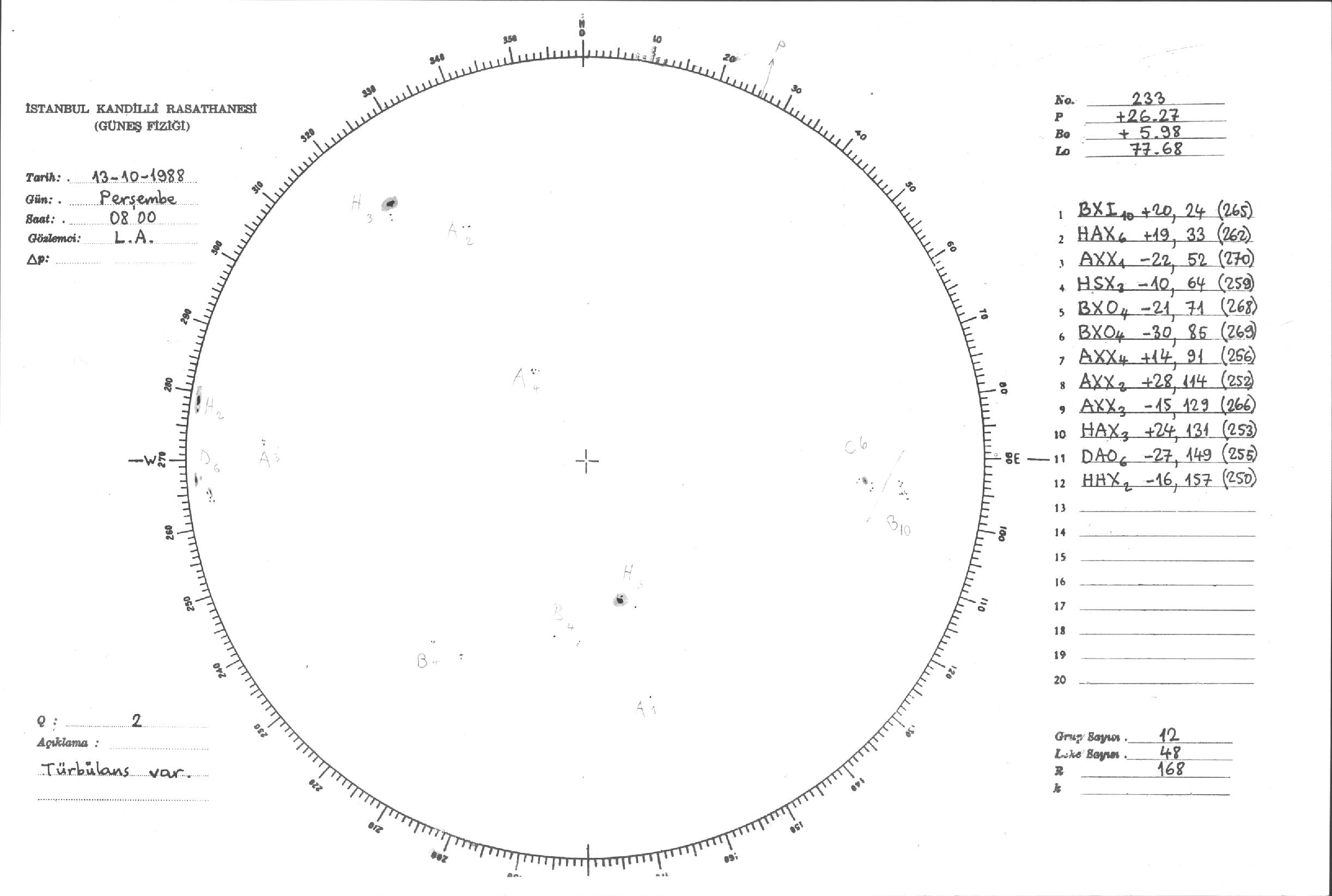 Güneş Lekesi Çizimi - 13.10.1988