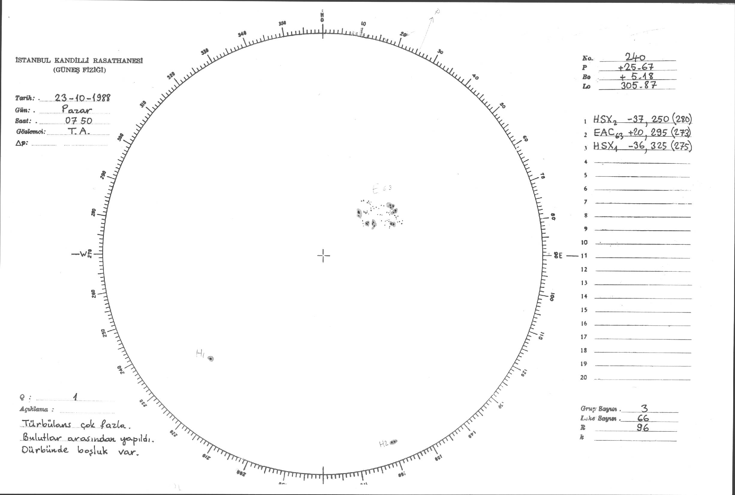 Güneş Lekesi Çizimi - 23.10.1988