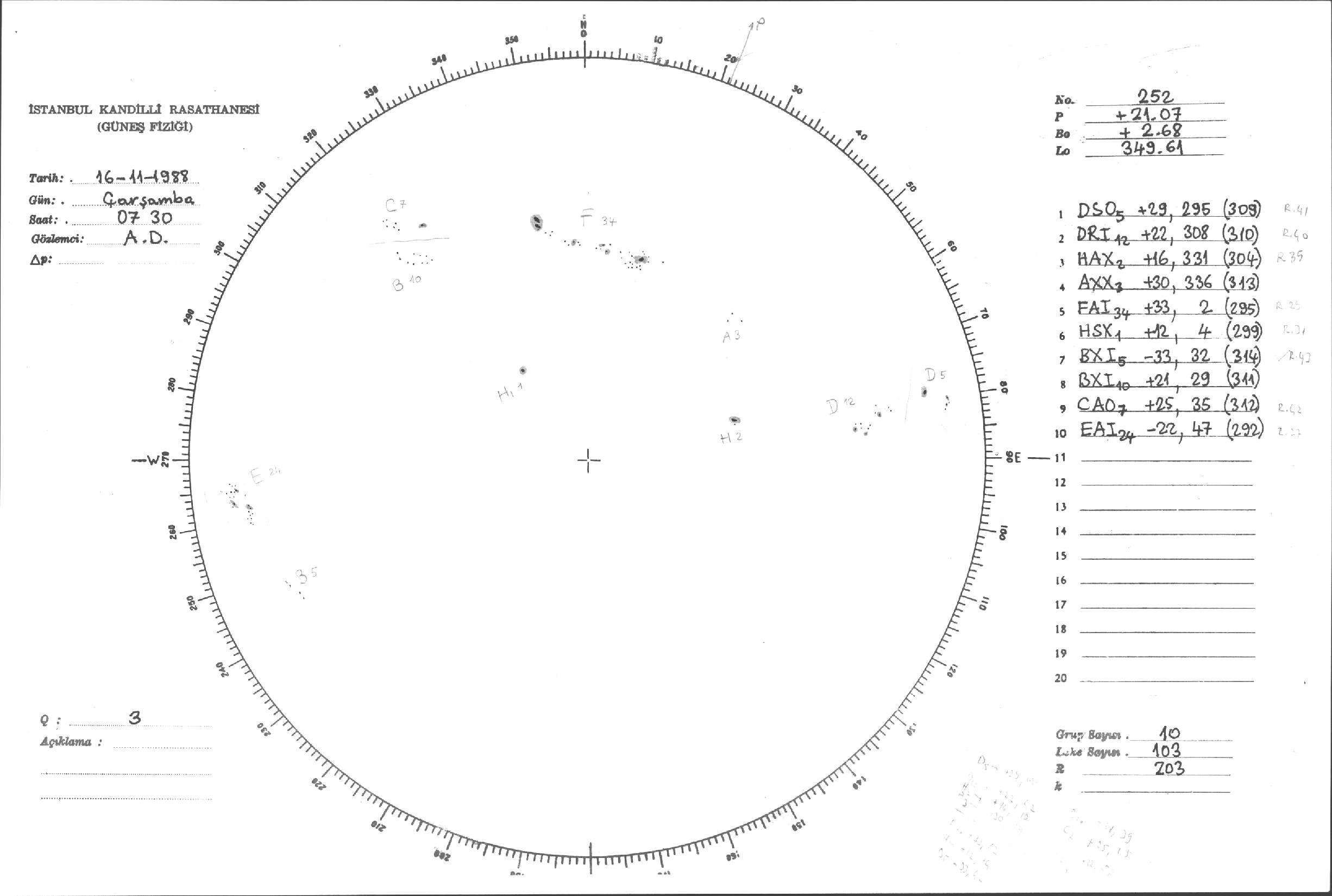 Güneş Lekesi Çizimi - 16.11.1988