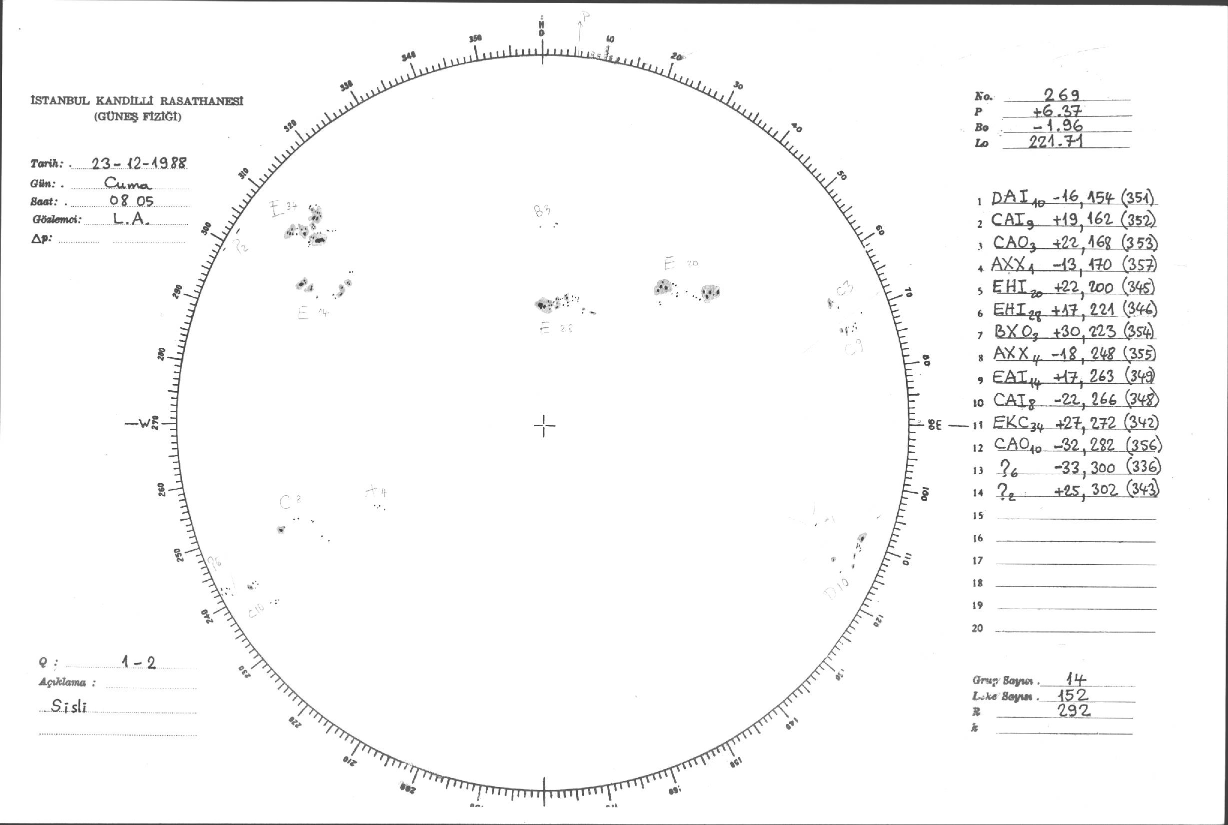 Güneş Lekesi Çizimi - 23.12.1988