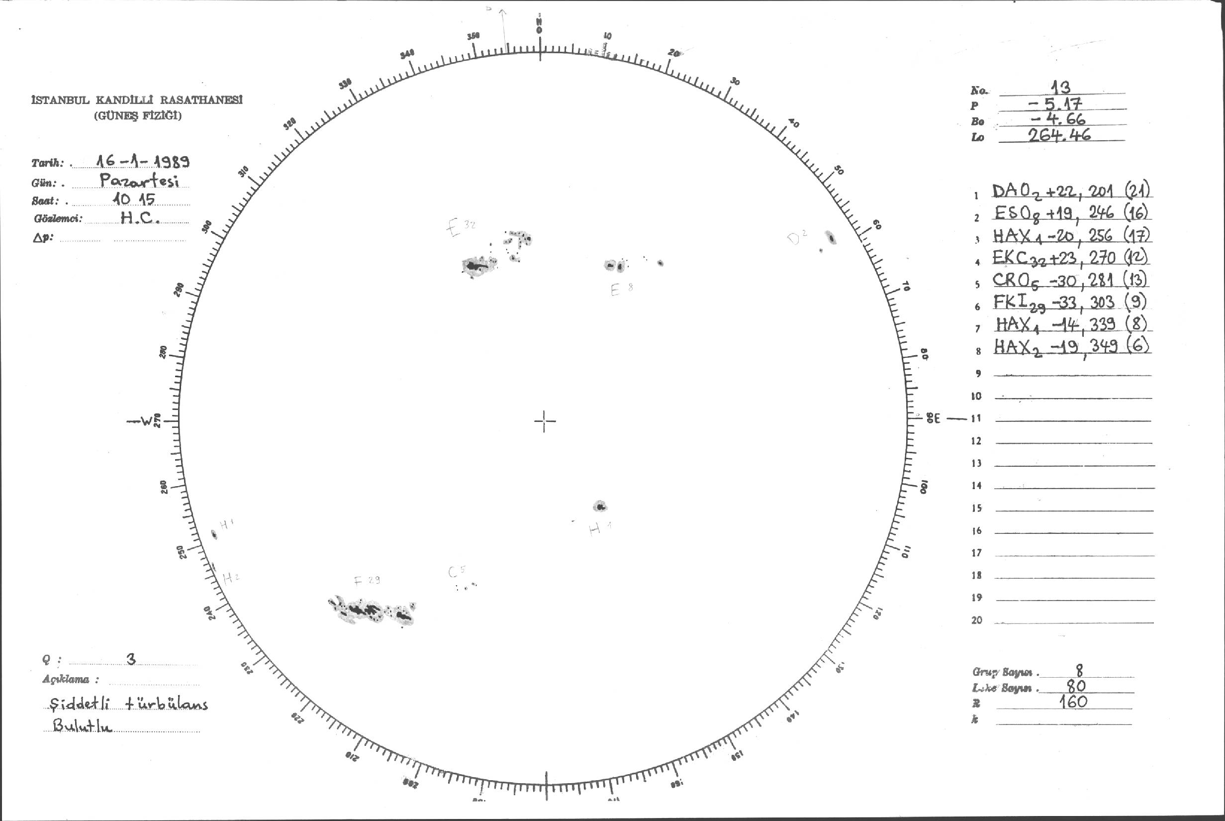 Güneş Lekesi Çizimi - 16.01.1989