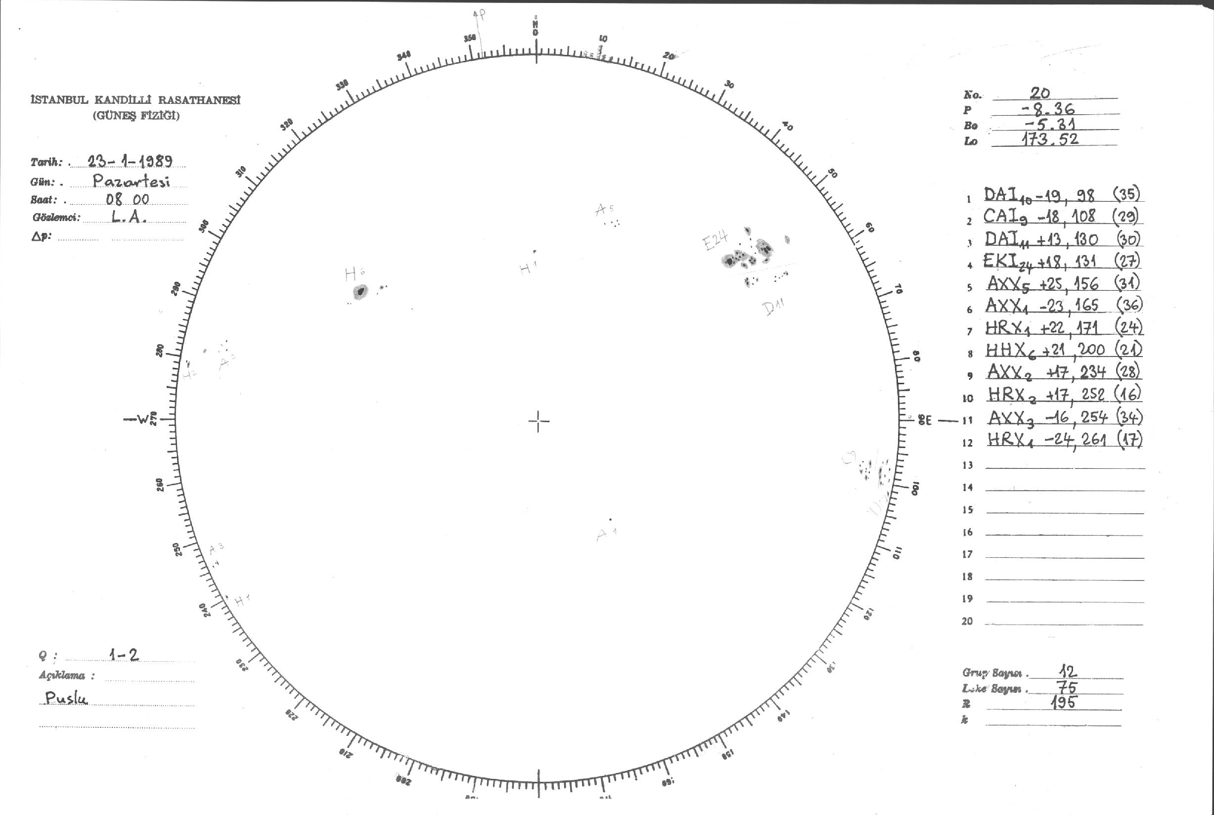 Güneş Lekesi Çizimi - 23.01.1989