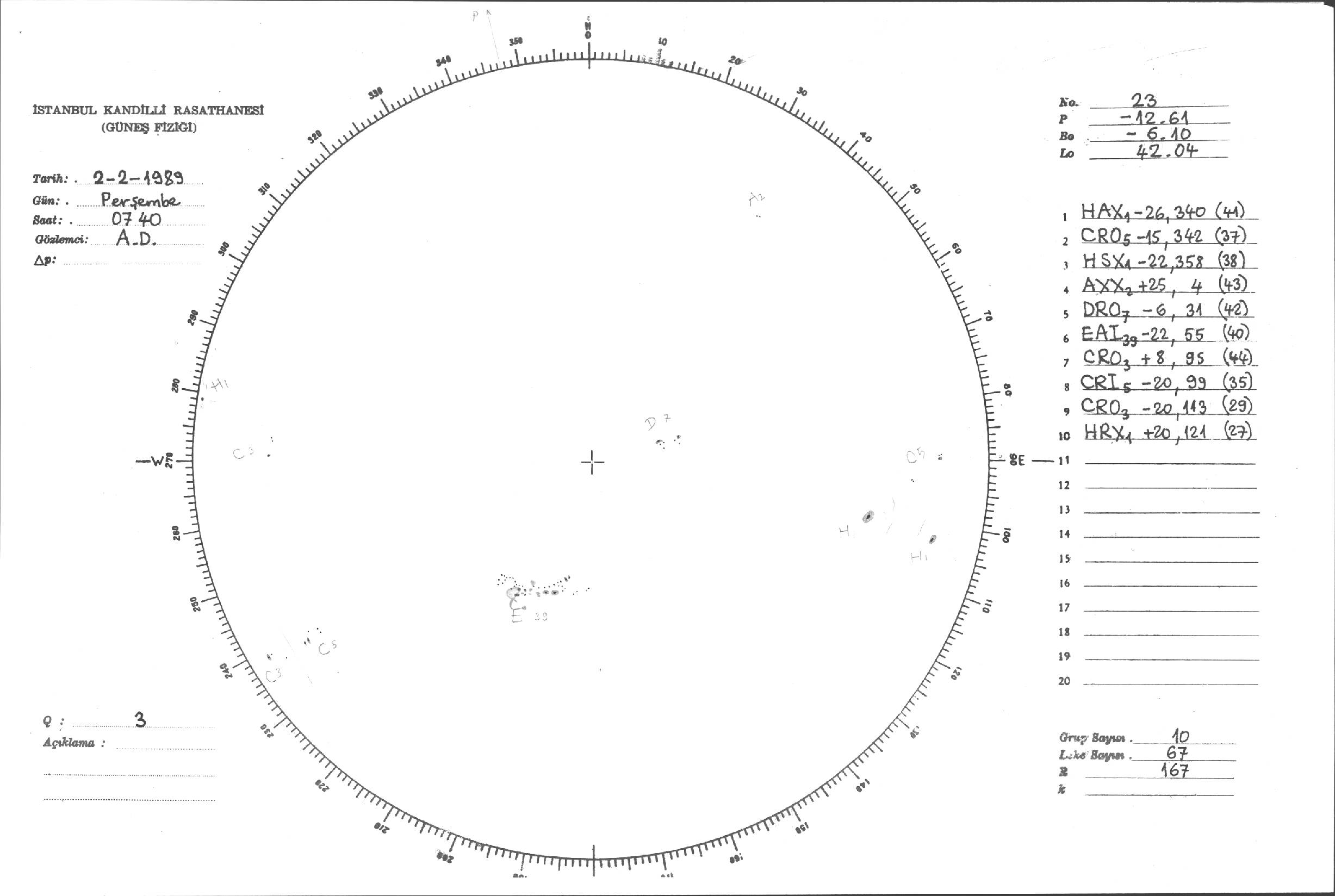 Güneş Lekesi Çizimi - 02.02.1989