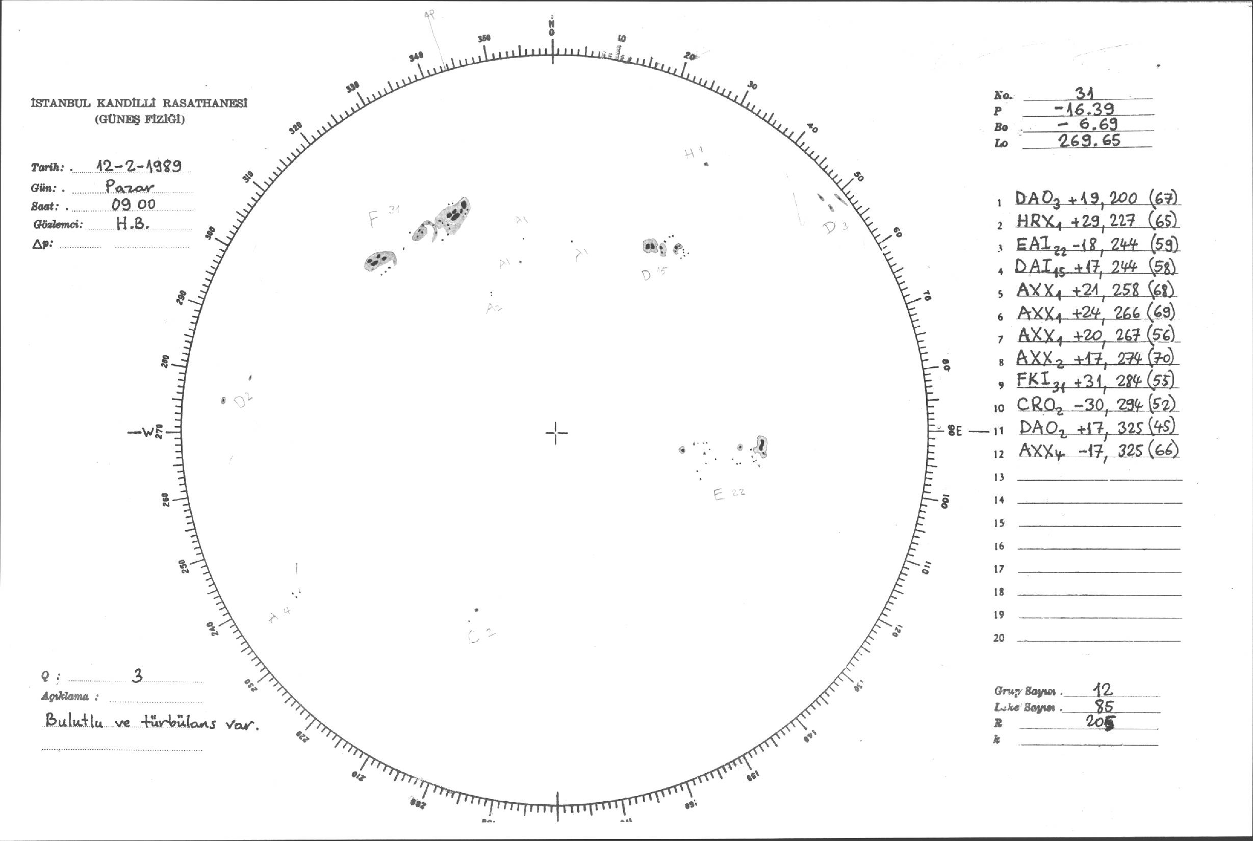 Güneş Lekesi Çizimi - 12.02.1989