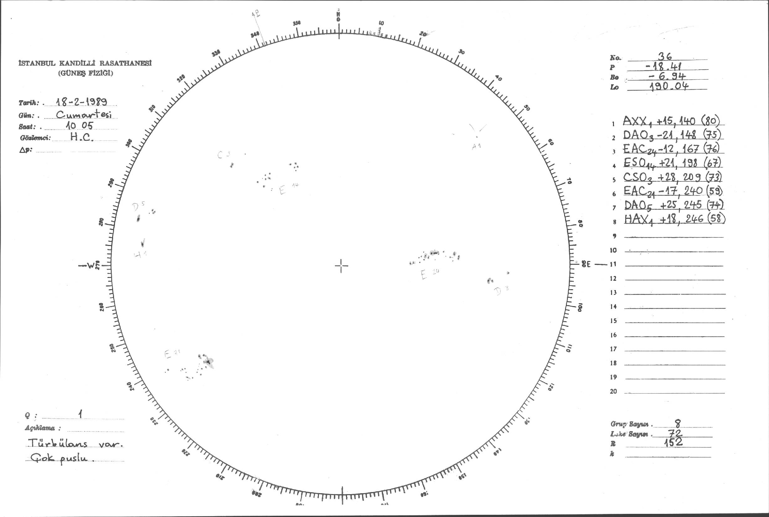 Güneş Lekesi Çizimi - 18.02.1989