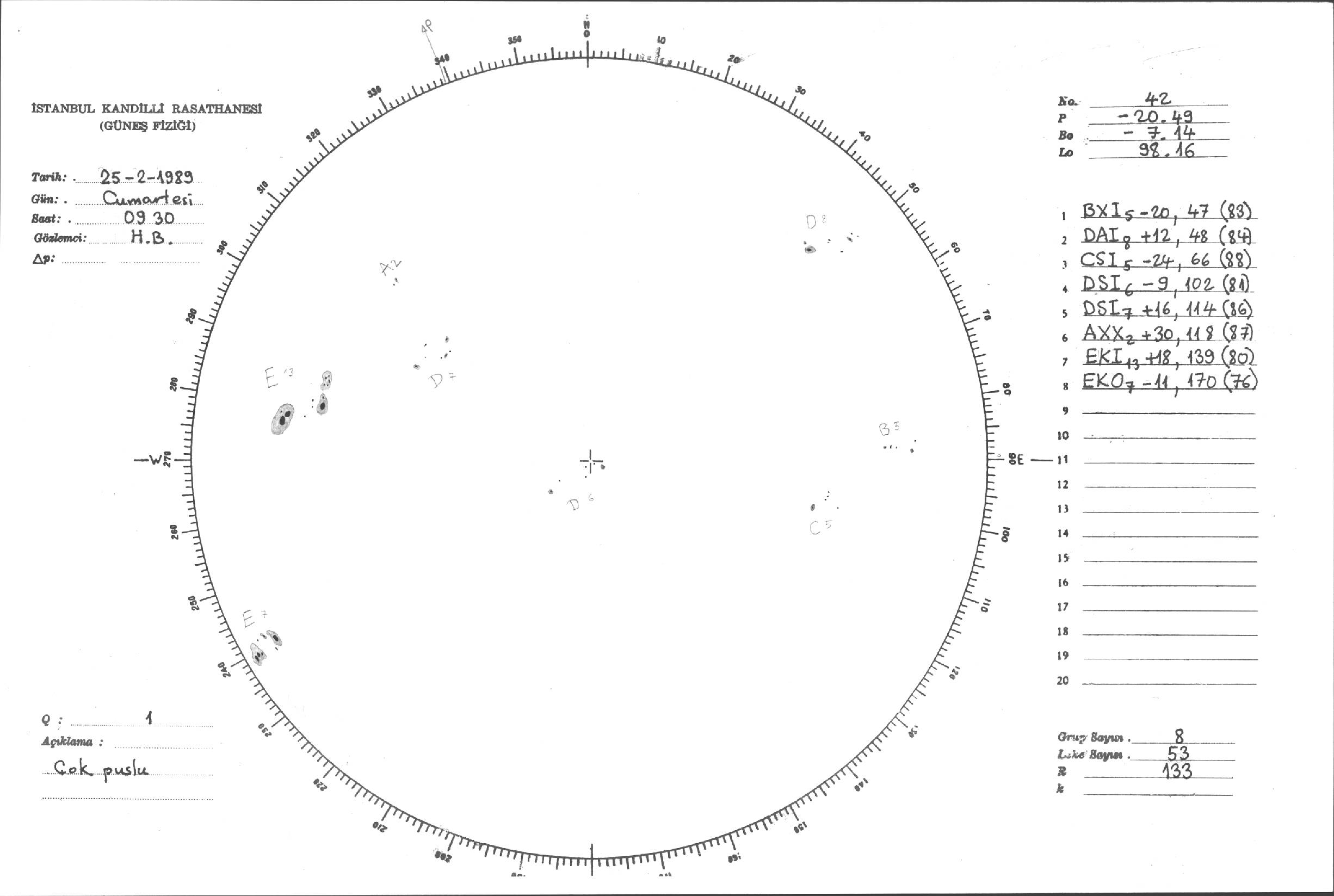 Güneş Lekesi Çizimi - 25.02.1989