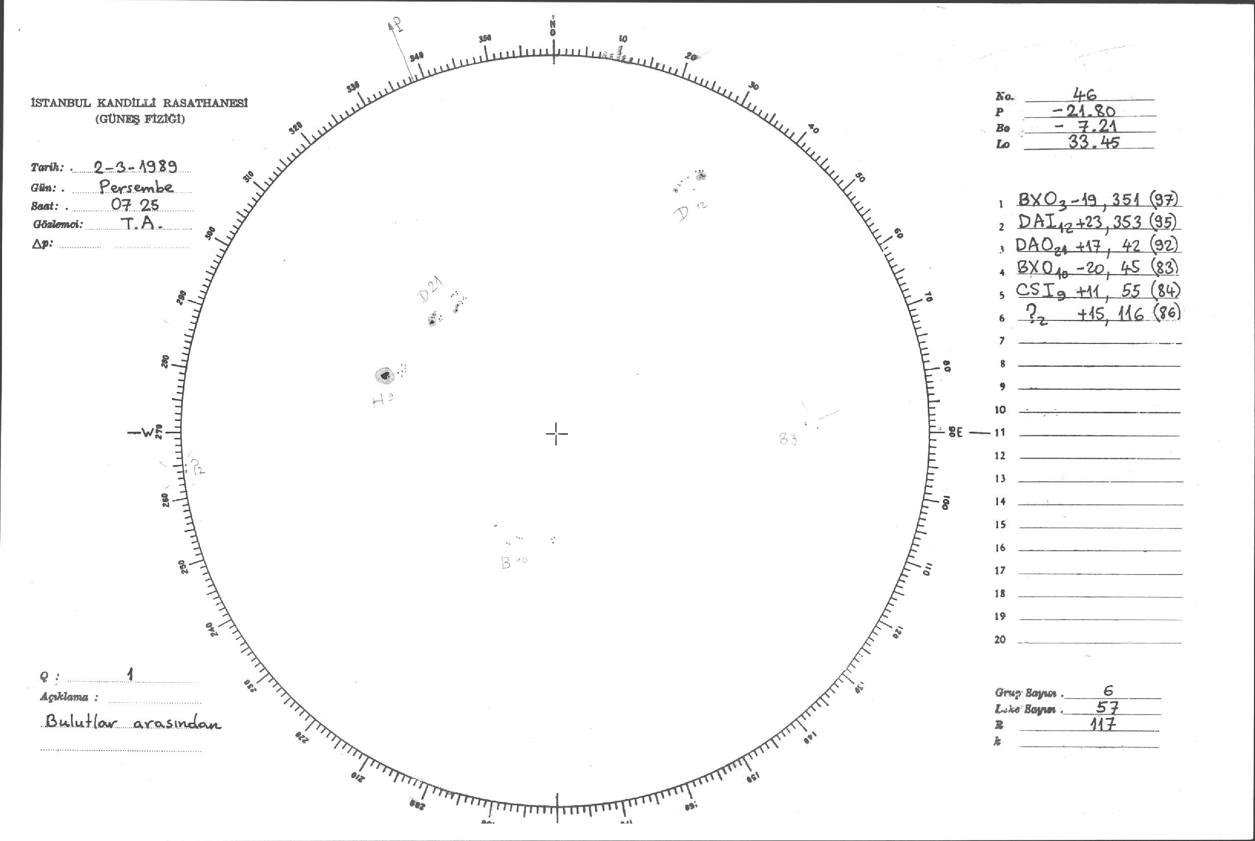 Güneş Lekesi Çizimi - 02.03.1989