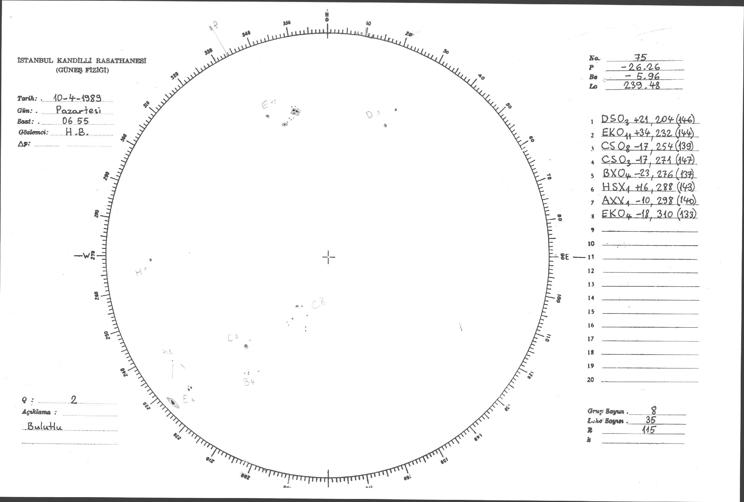 Güneş Lekesi Çizimi - 10.04.1989