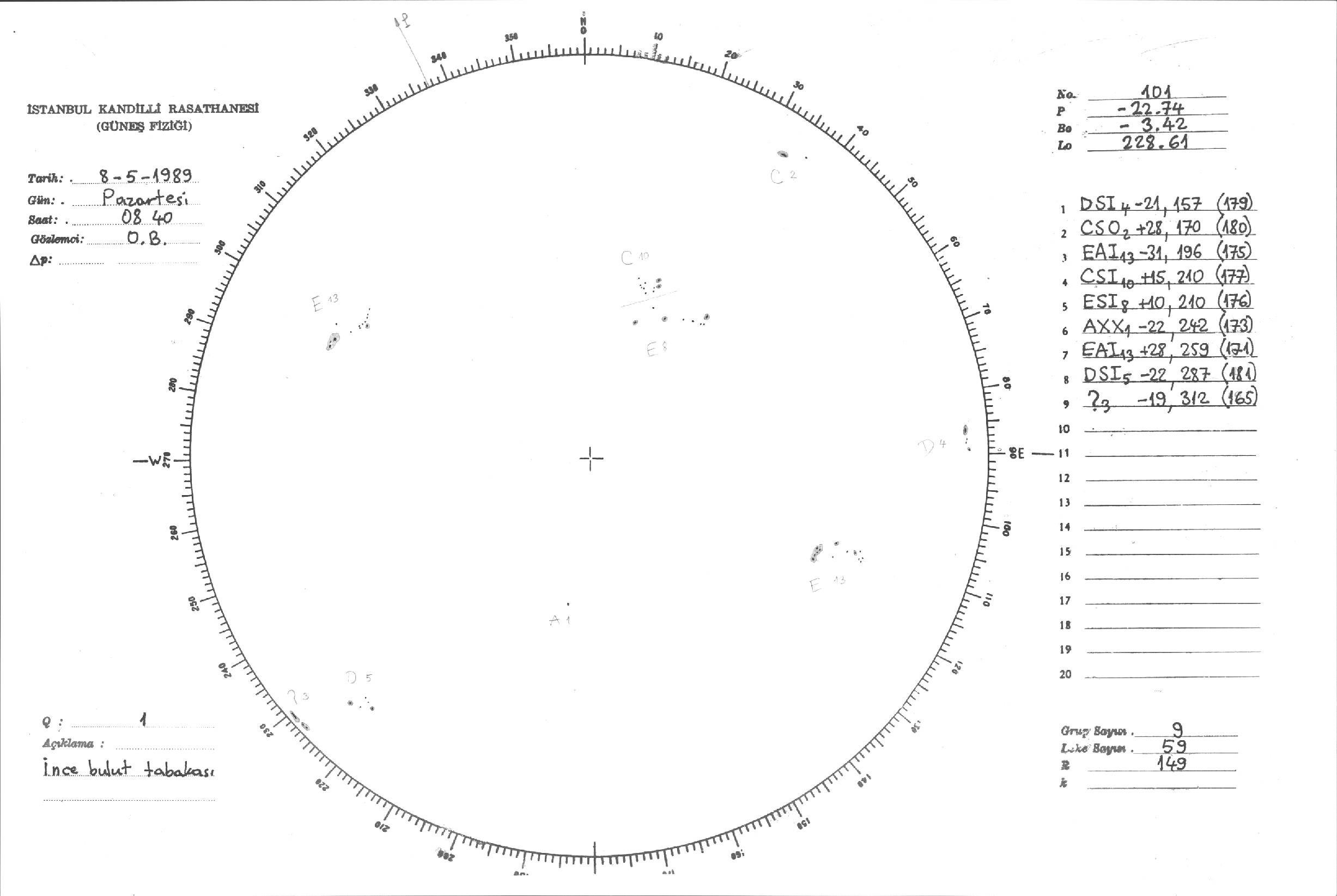 Güneş Lekesi Çizimi - 08.05.1989