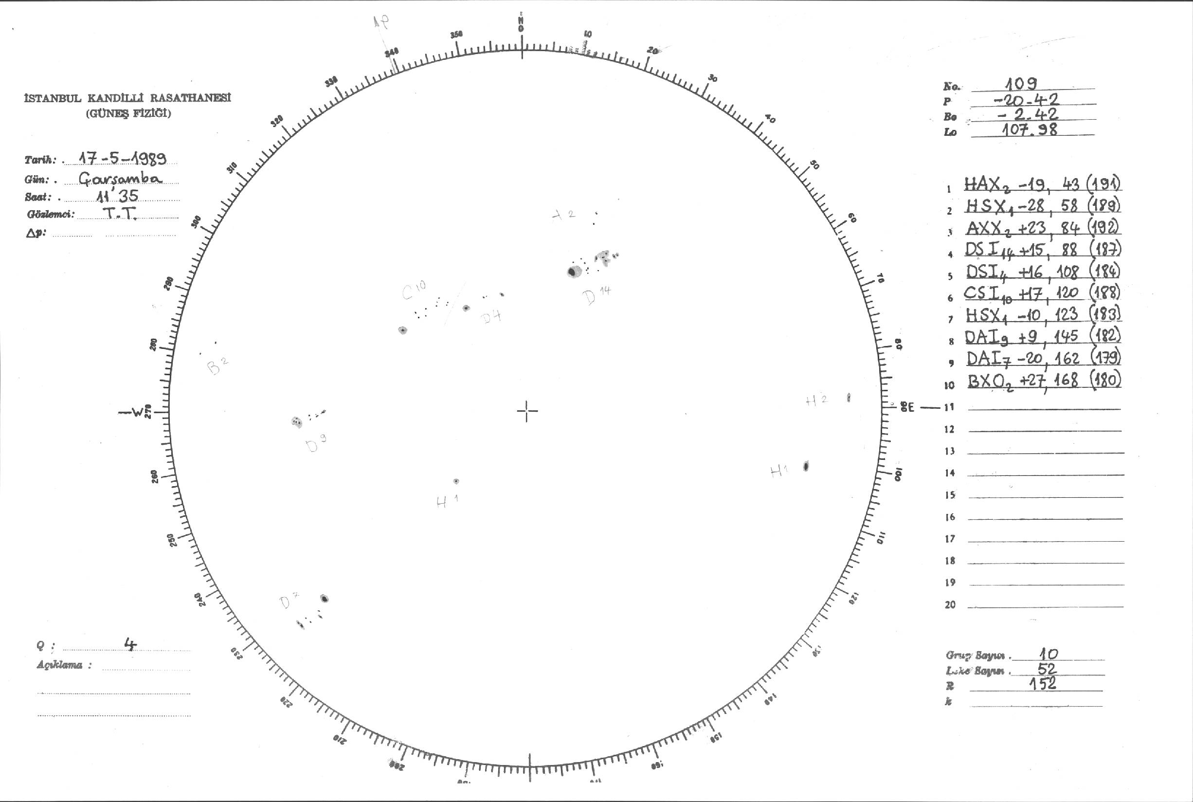 Güneş Lekesi Çizimi - 17.05.1989