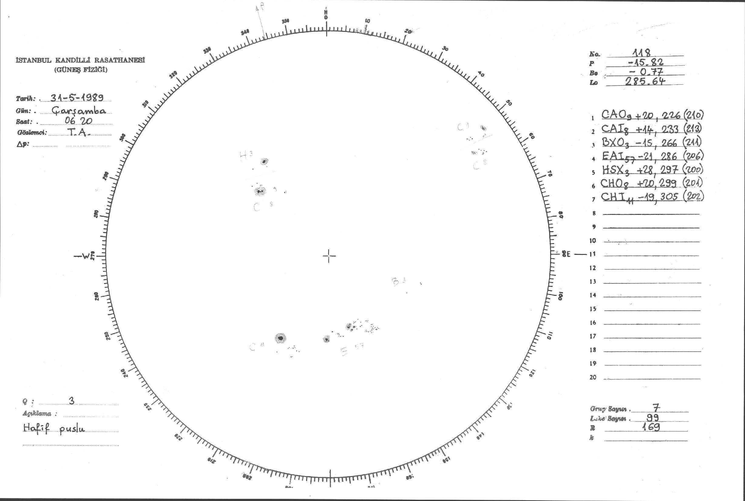 Güneş Lekesi Çizimi - 31.05.1989