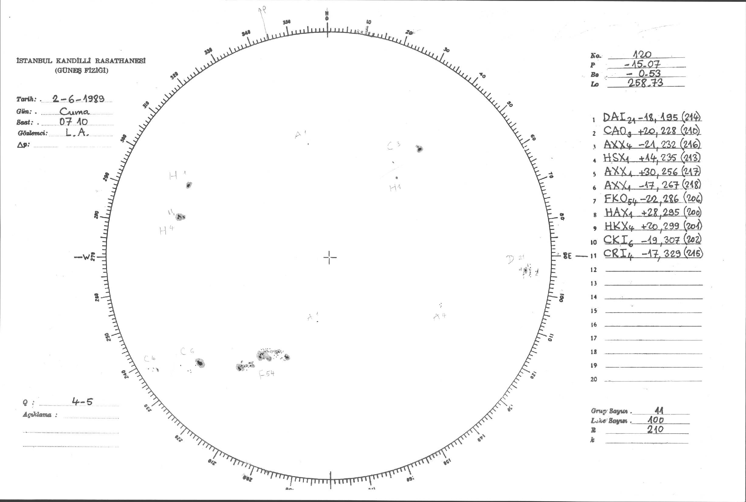 Güneş Lekesi Çizimi - 02.06.1989