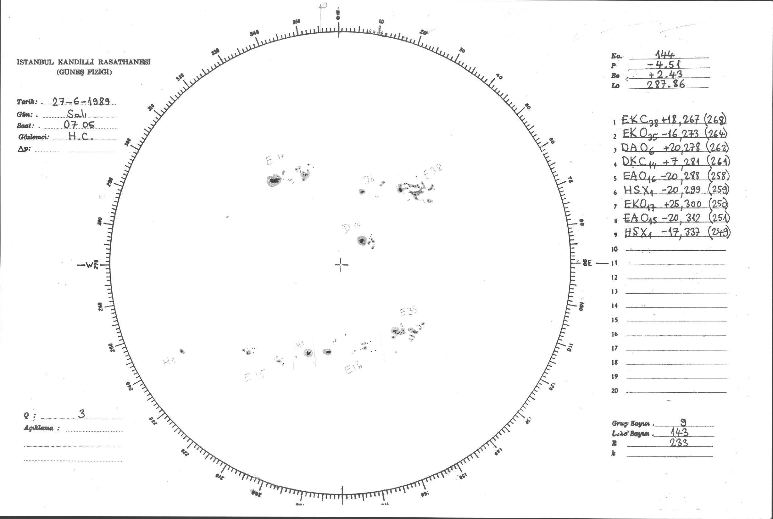 Güneş Lekesi Çizimi - 27.06.1989