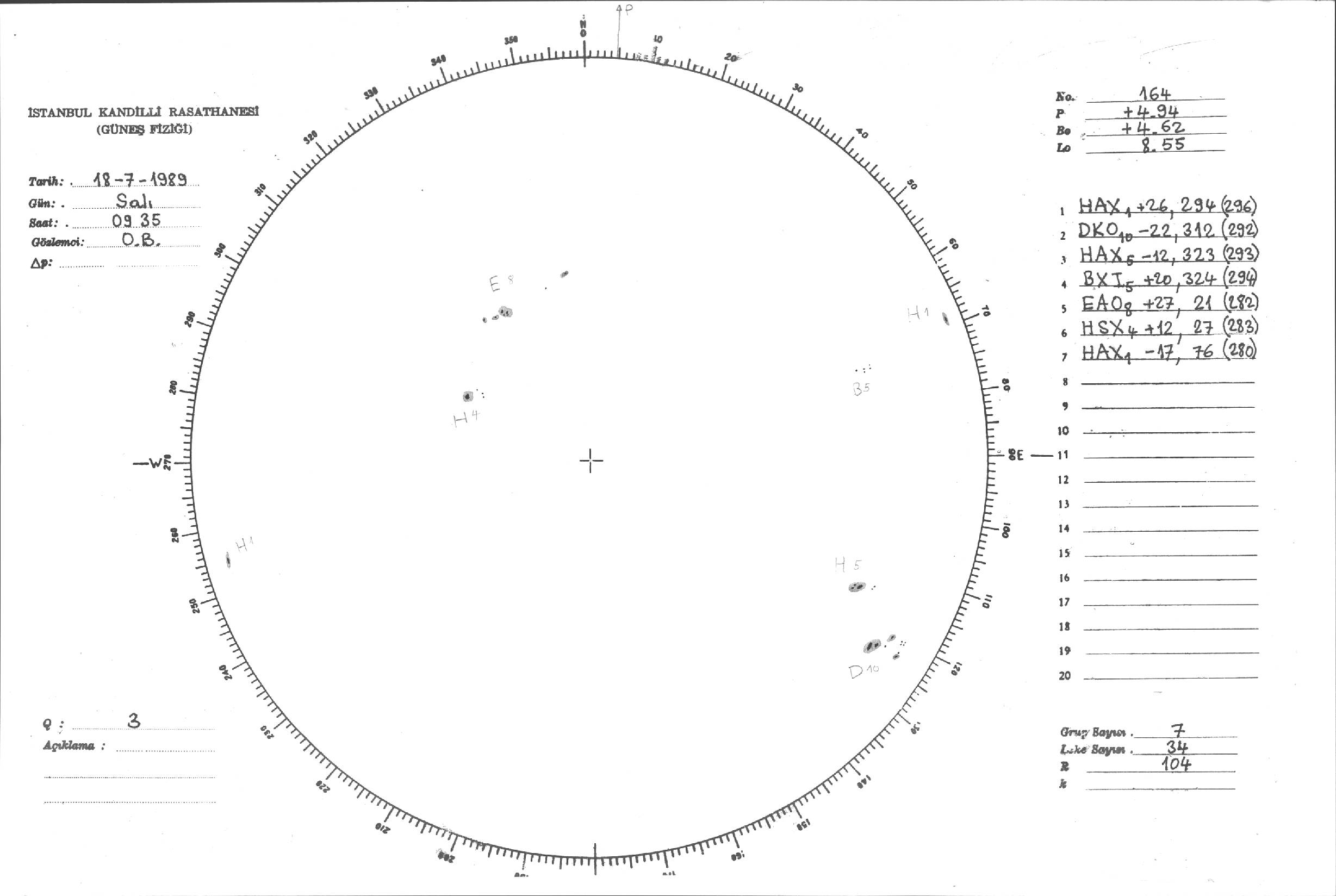 Güneş Lekesi Çizimi - 18.07.1989