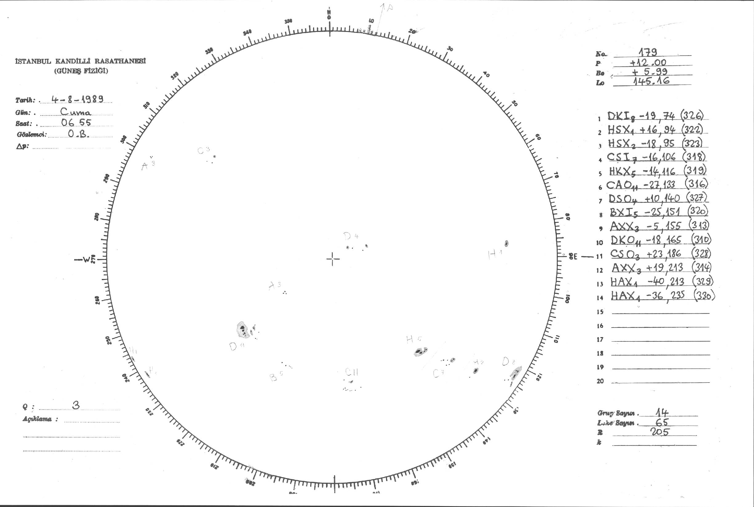 Güneş Lekesi Çizimi - 04.08.1989