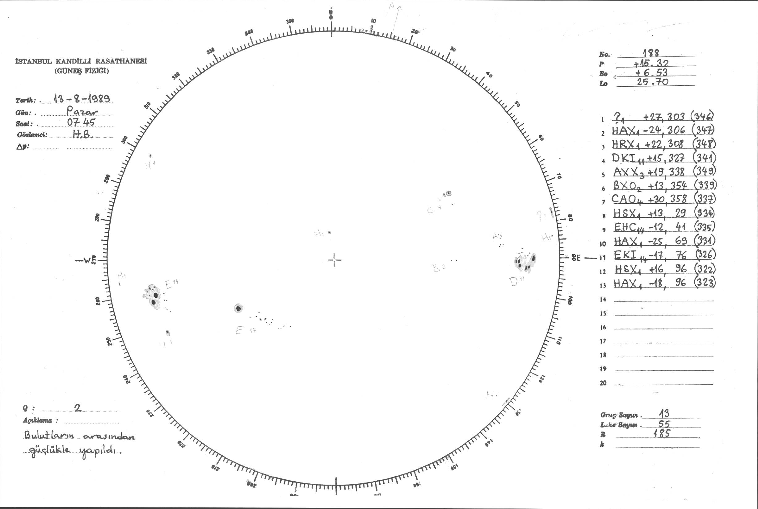 Güneş Lekesi Çizimi - 13.08.1989