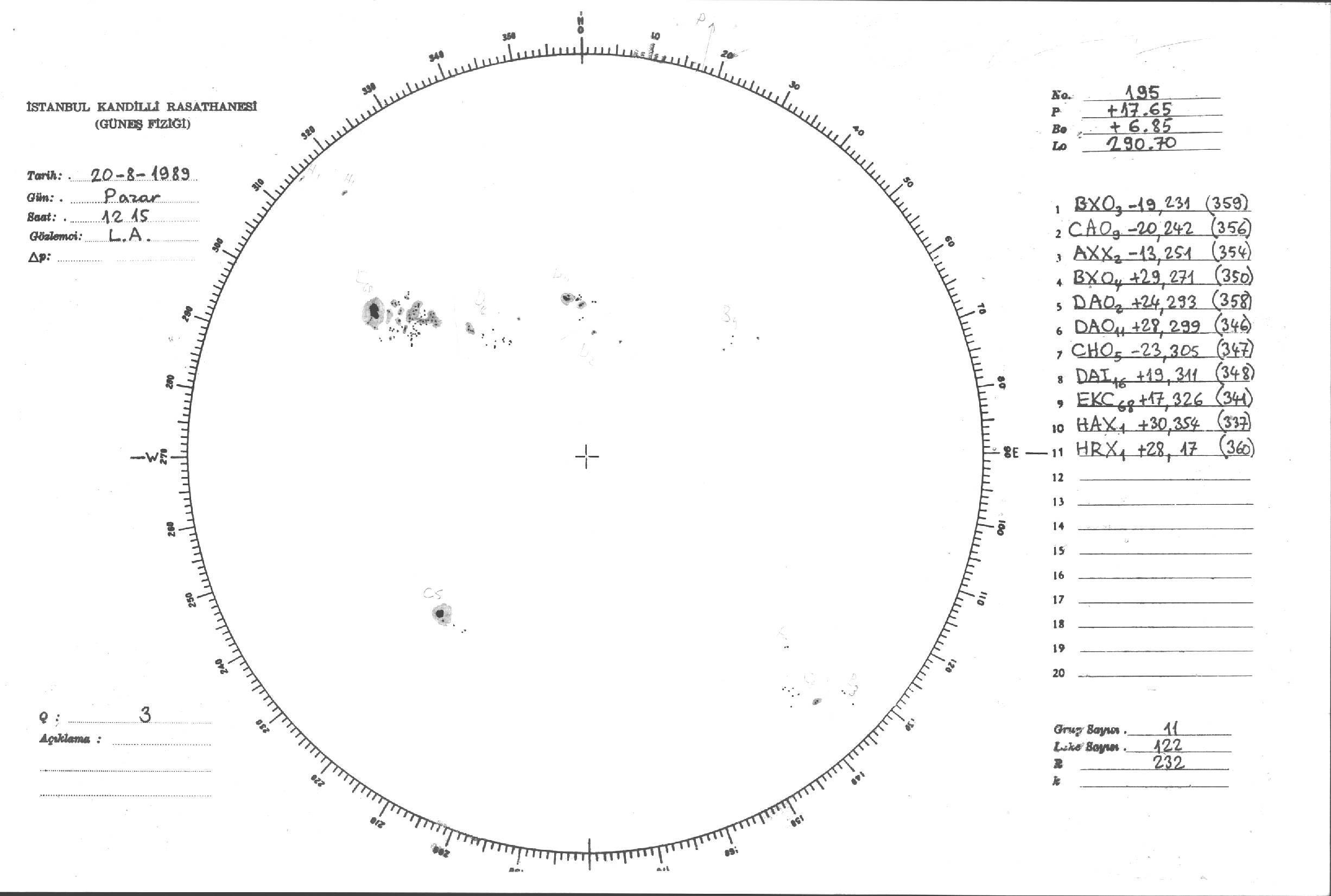 Güneş Lekesi Çizimi - 20.08.1989