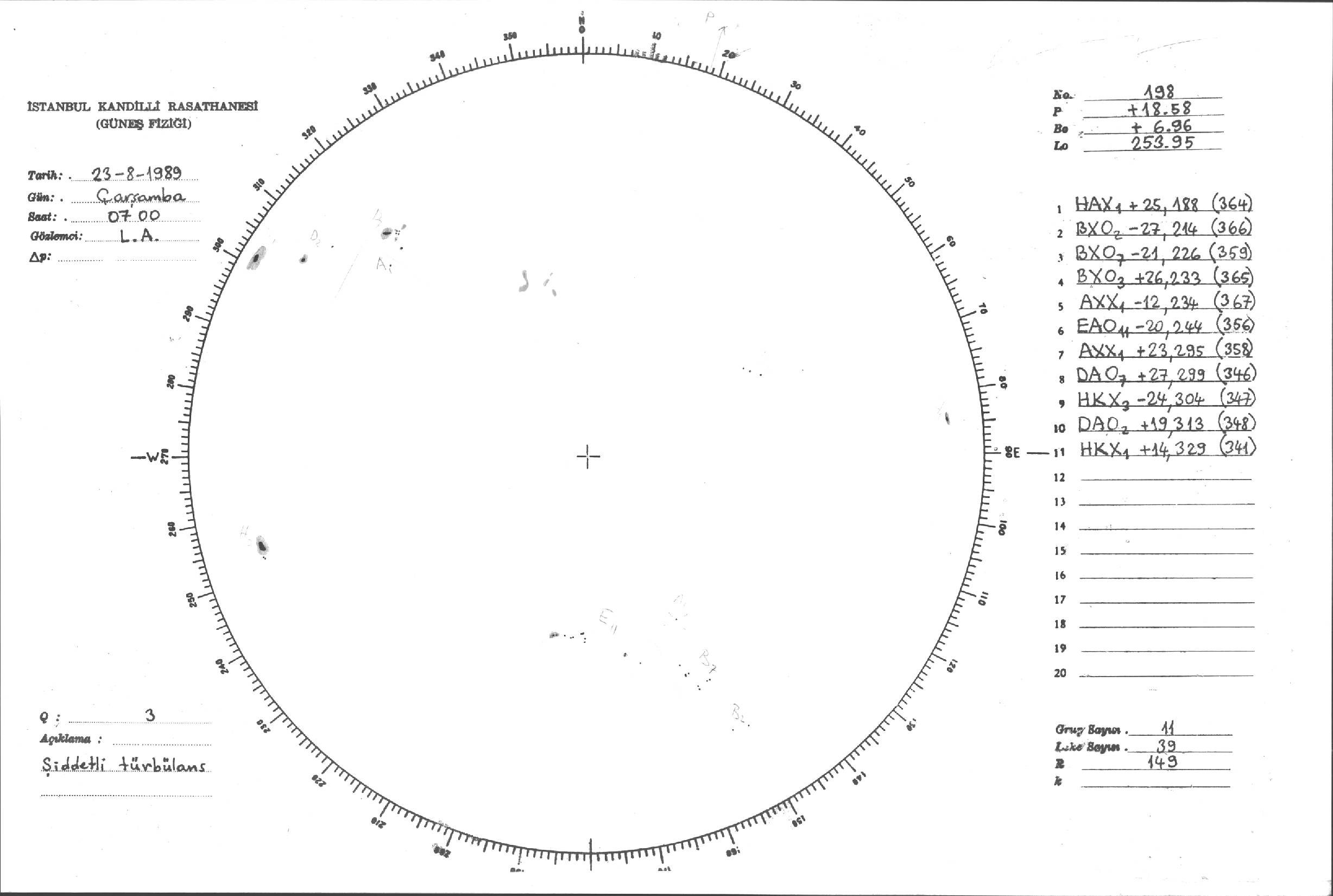 Güneş Lekesi Çizimi - 23.08.1989