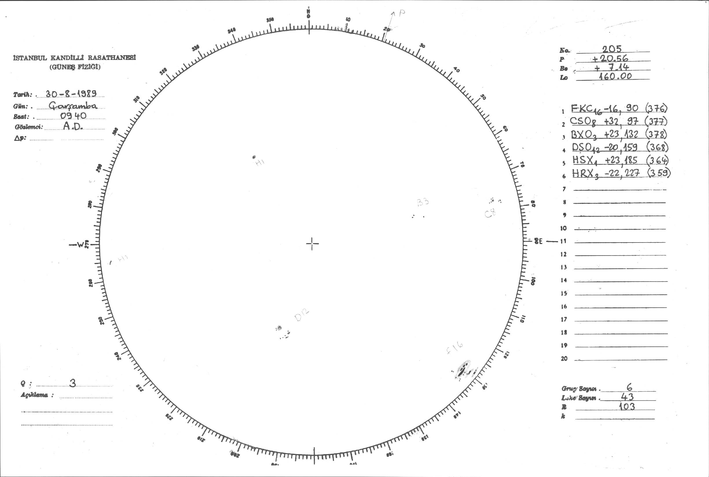 Güneş Lekesi Çizimi - 30.08.1989