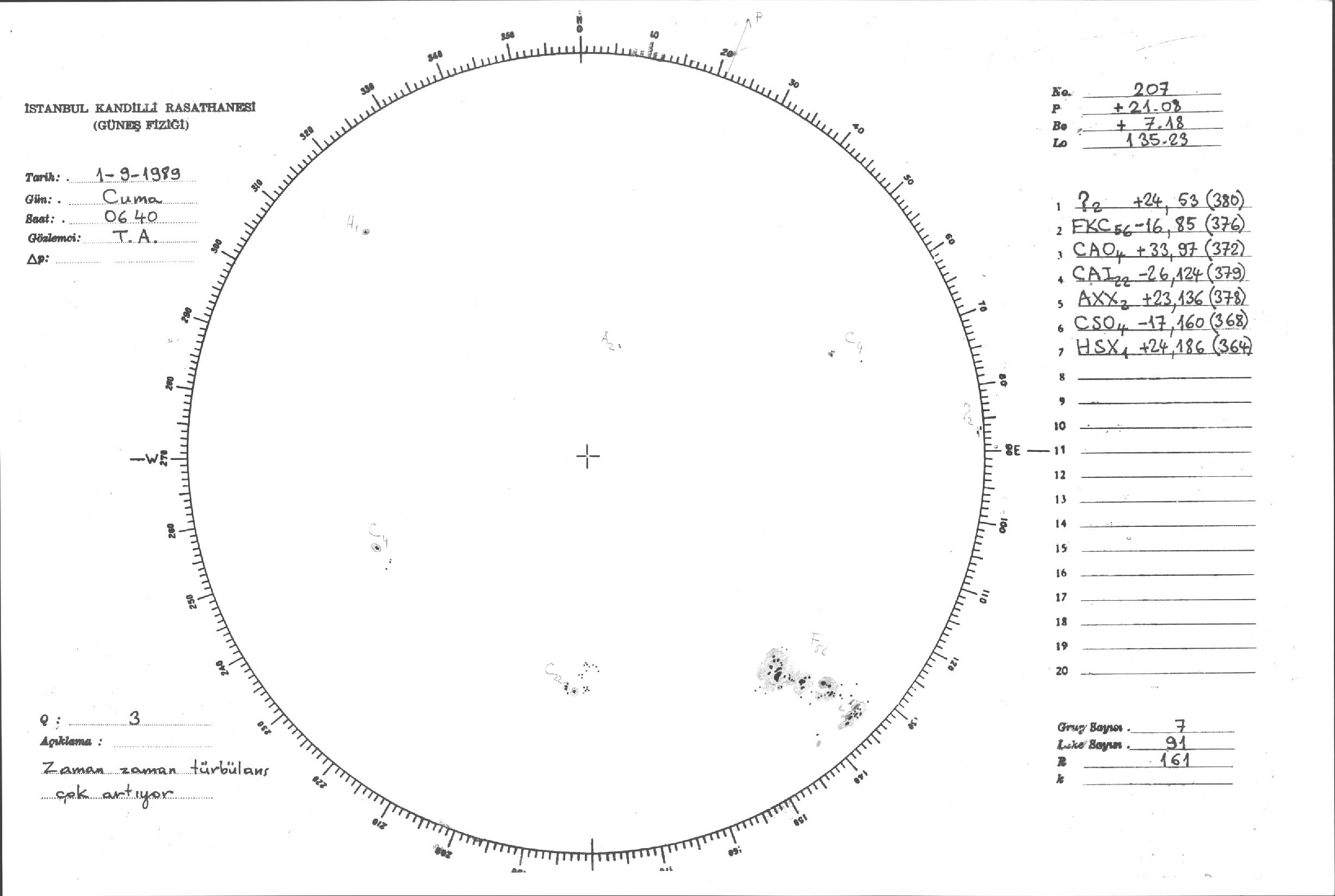 Güneş Lekesi Çizimi - 01.09.1989