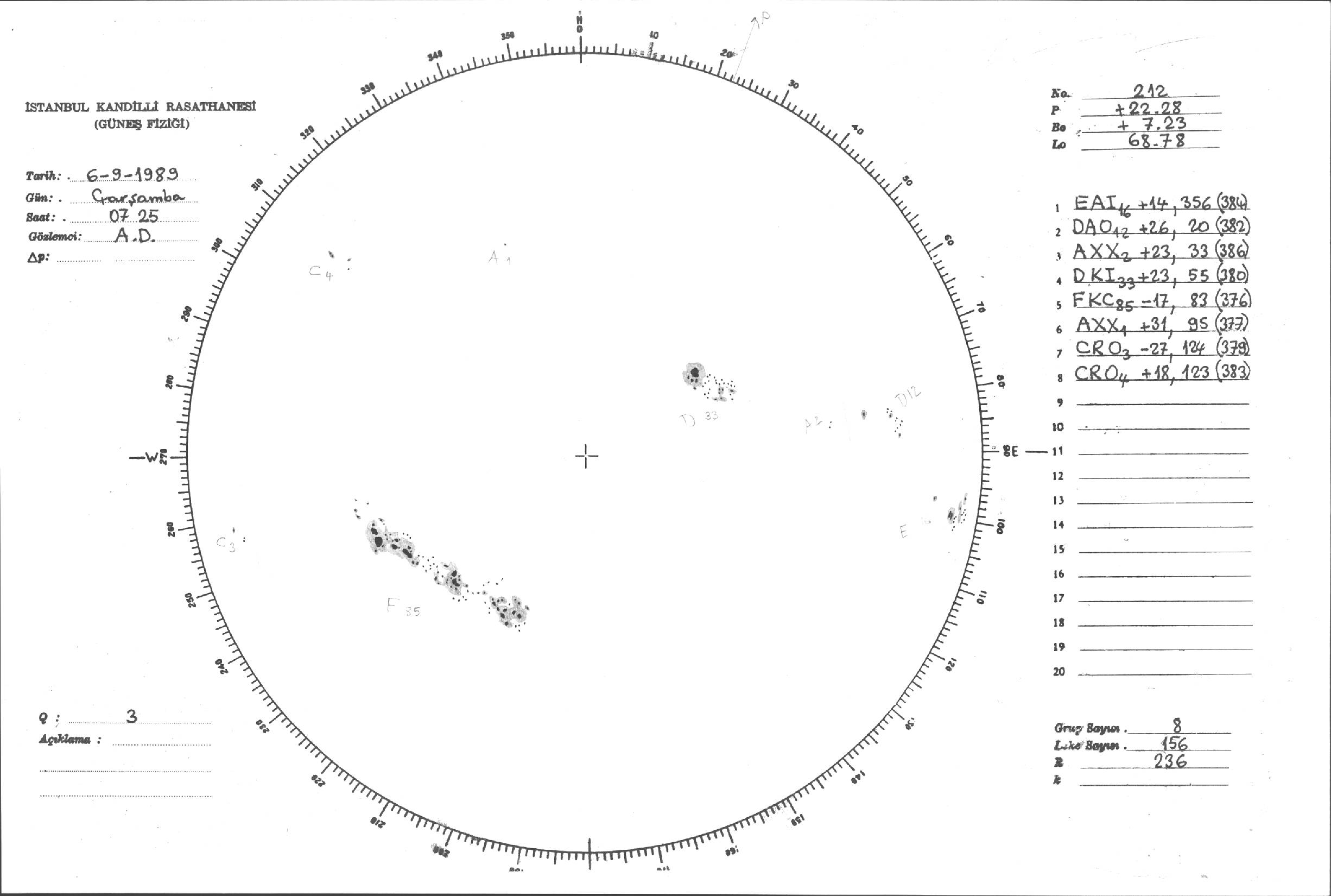 Güneş Lekesi Çizimi - 06.09.1989