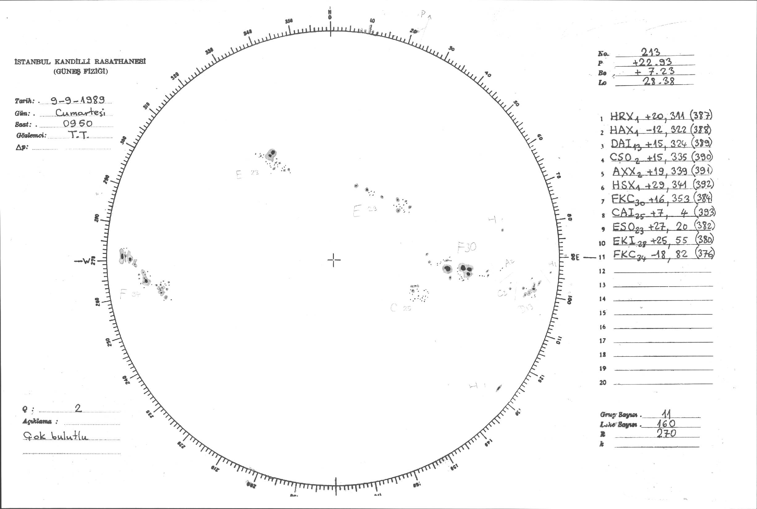 Güneş Lekesi Çizimi - 09.09.1989