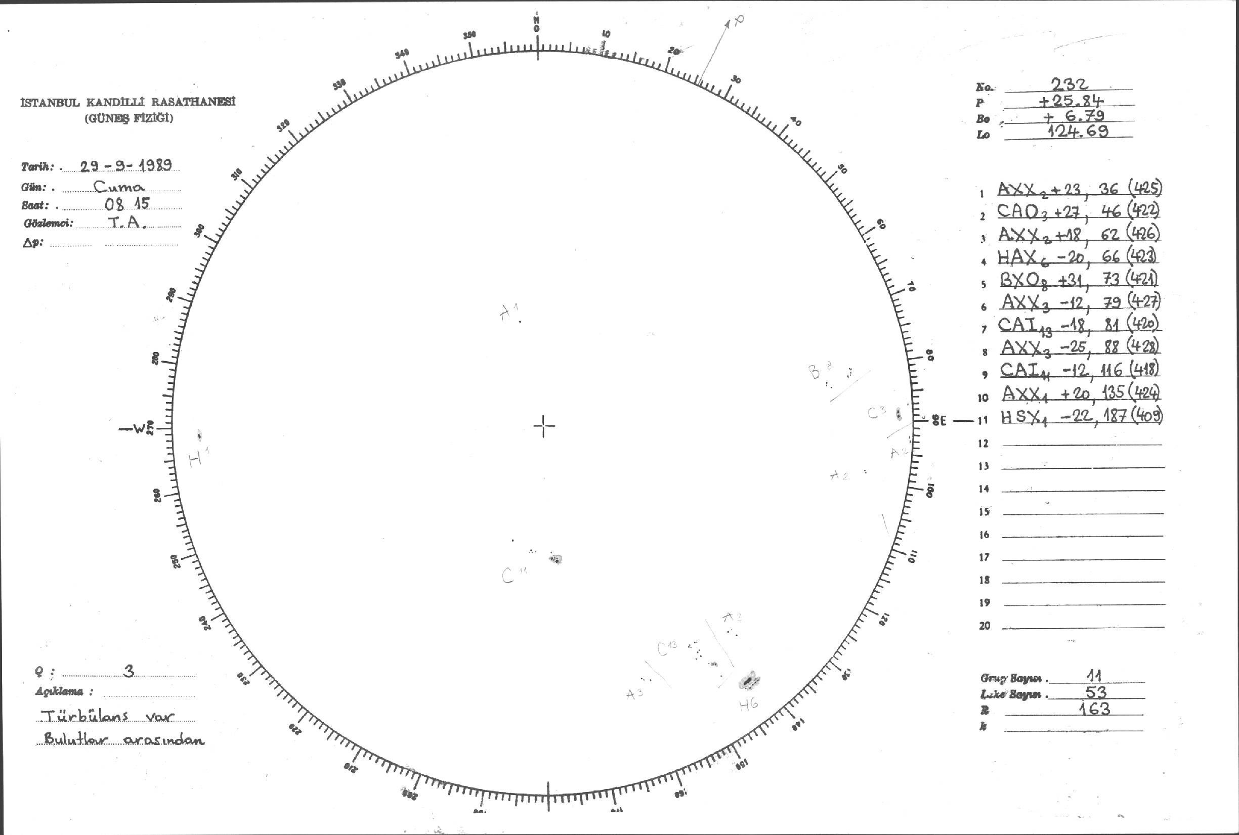 Güneş Lekesi Çizimi - 29.09.1989