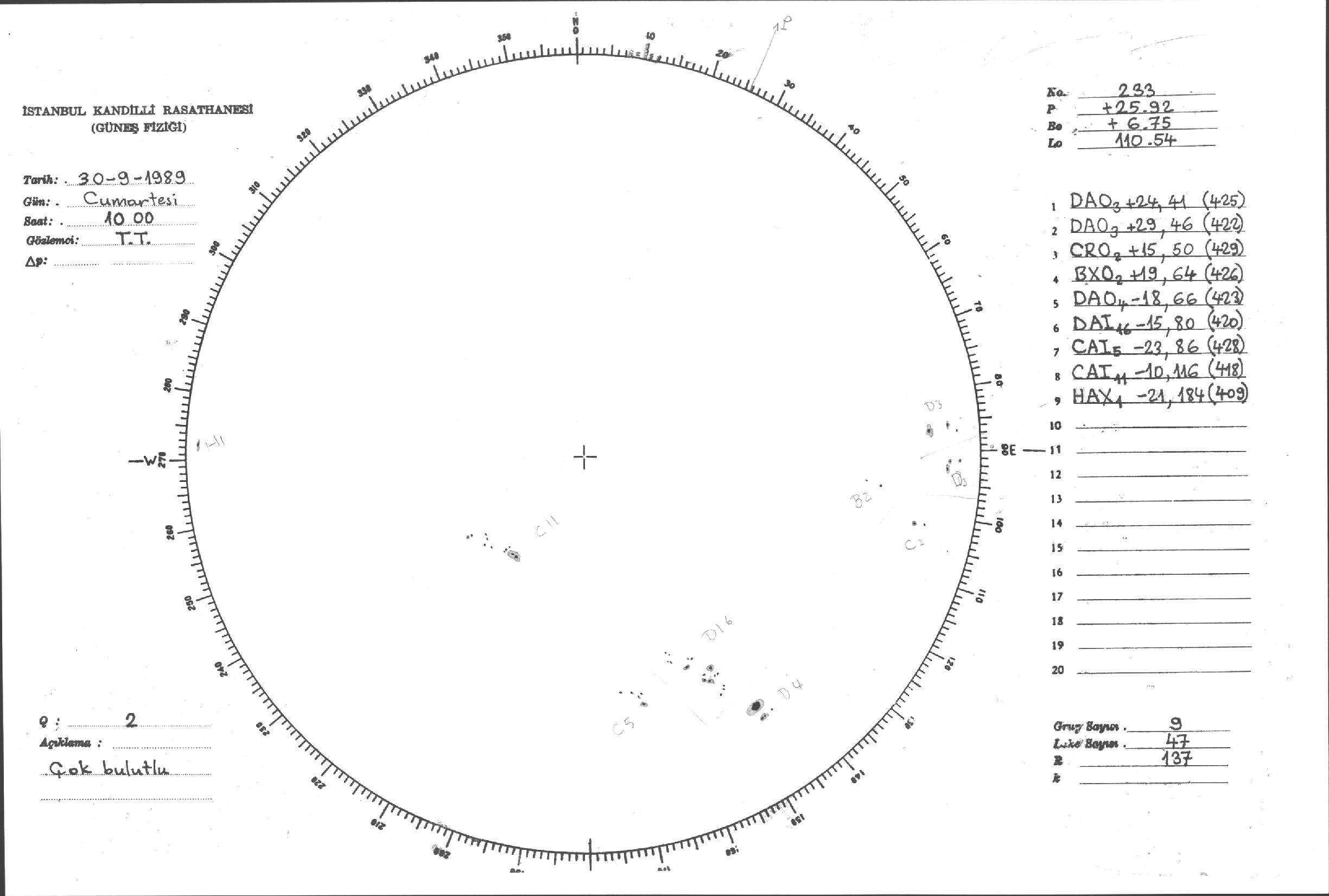 Güneş Lekesi Çizimi - 30.09.1989