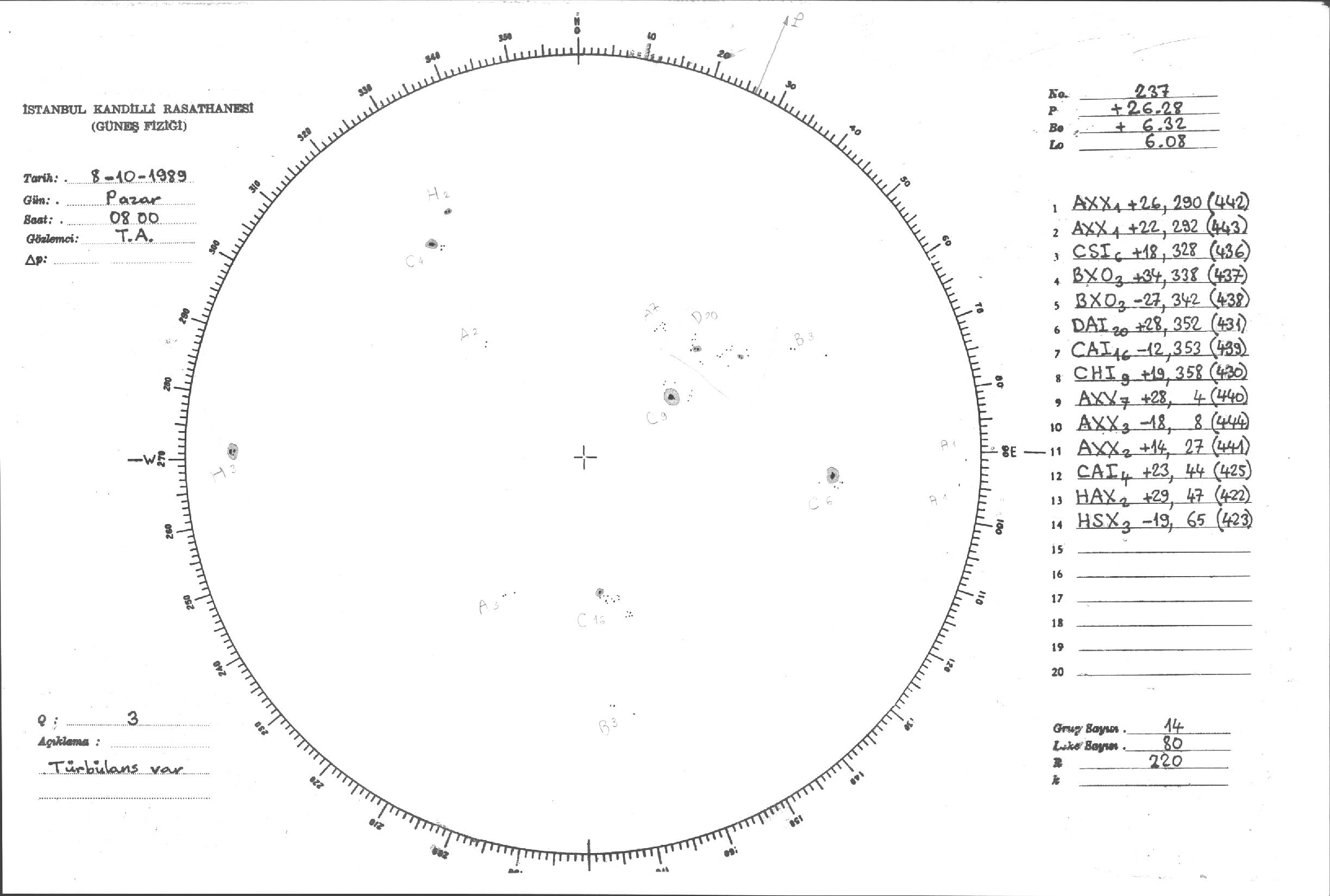 Güneş Lekesi Çizimi - 08.10.1989