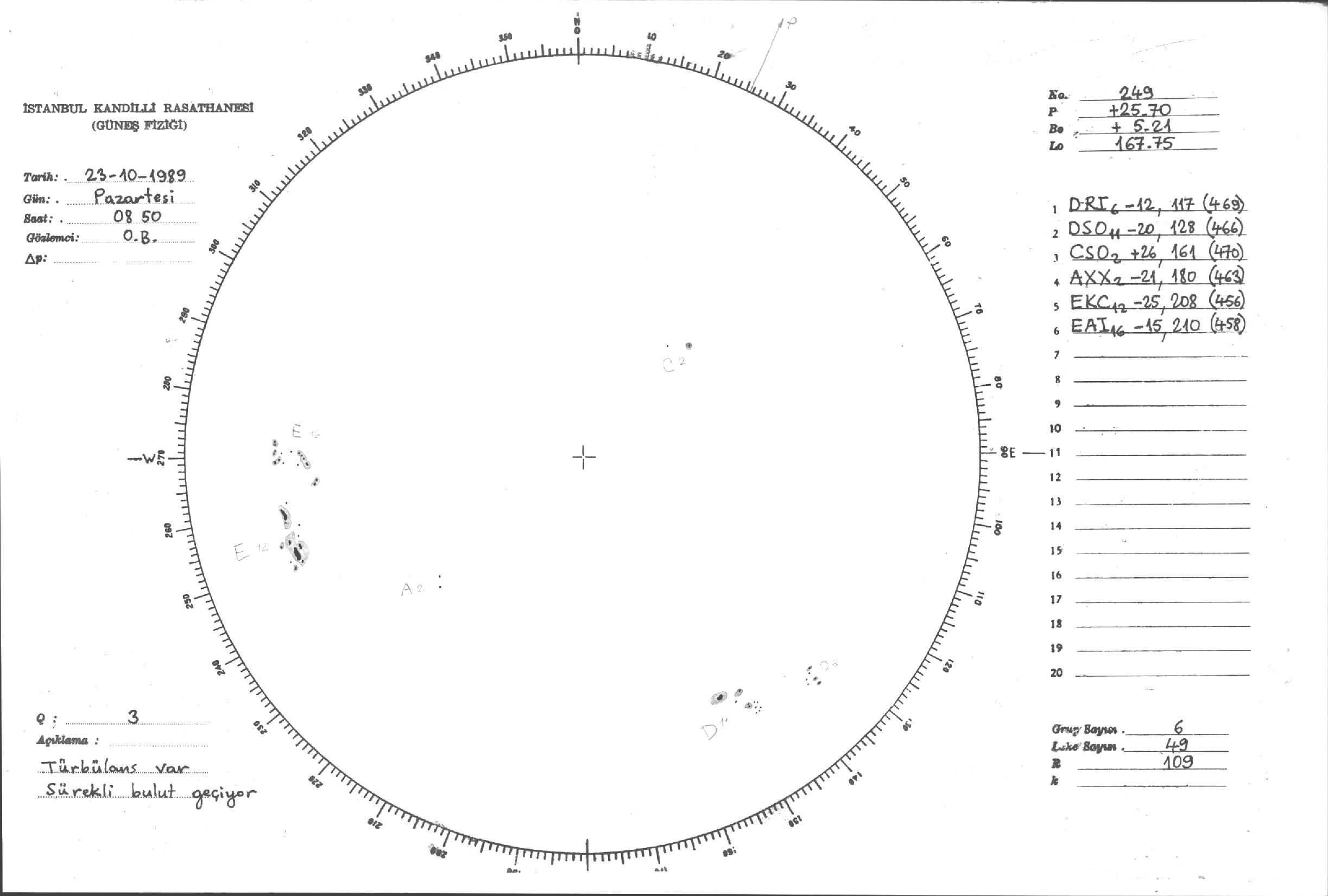 Güneş Lekesi Çizimi - 23.10.1989