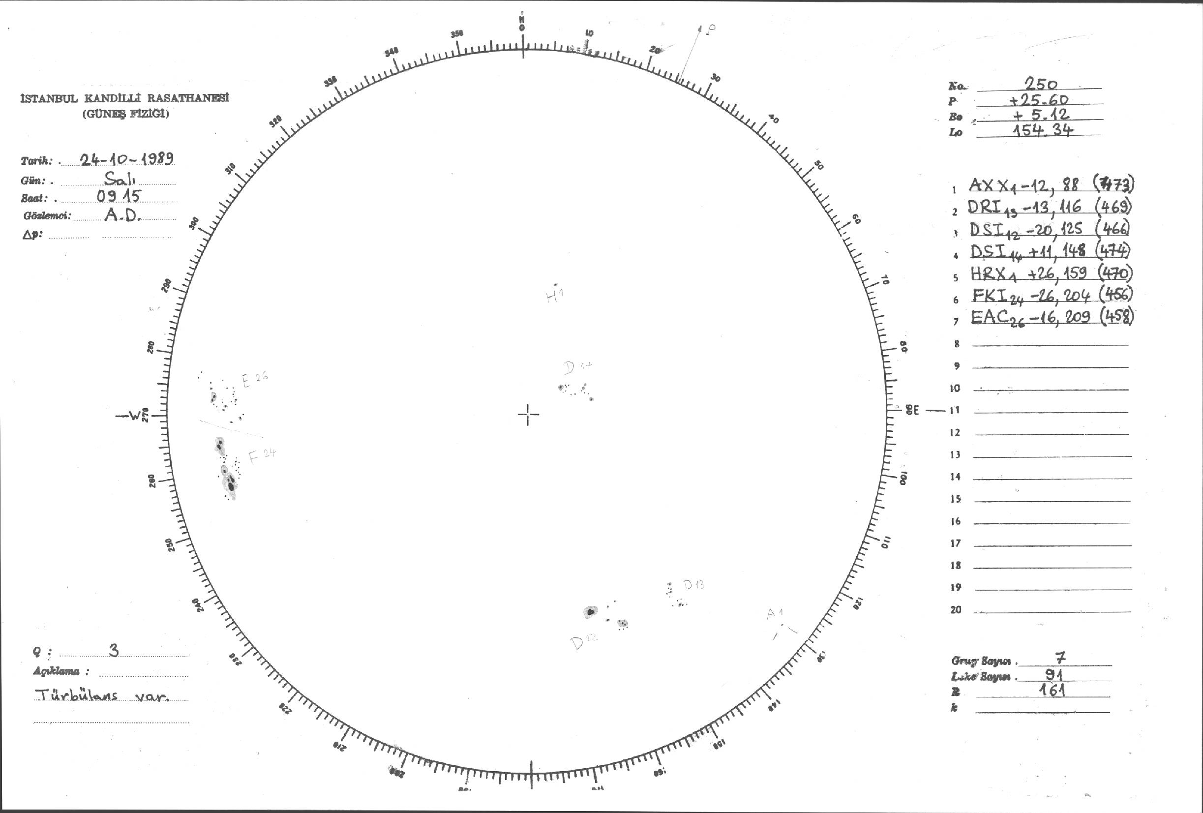 Güneş Lekesi Çizimi - 24.10.1989