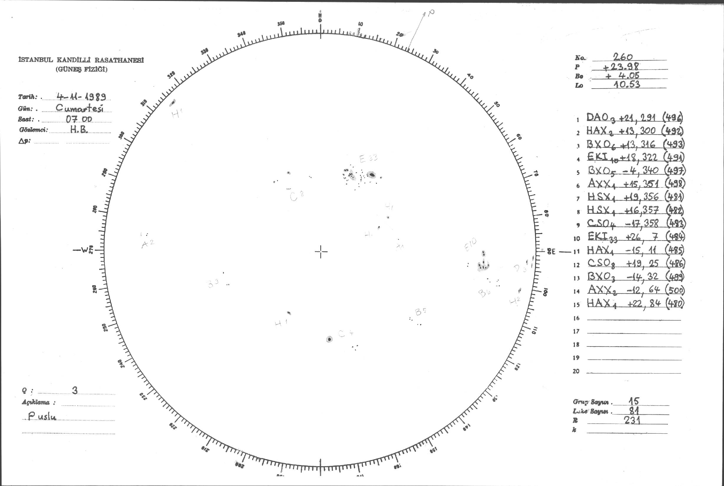 Güneş Lekesi Çizimi - 04.11.1989