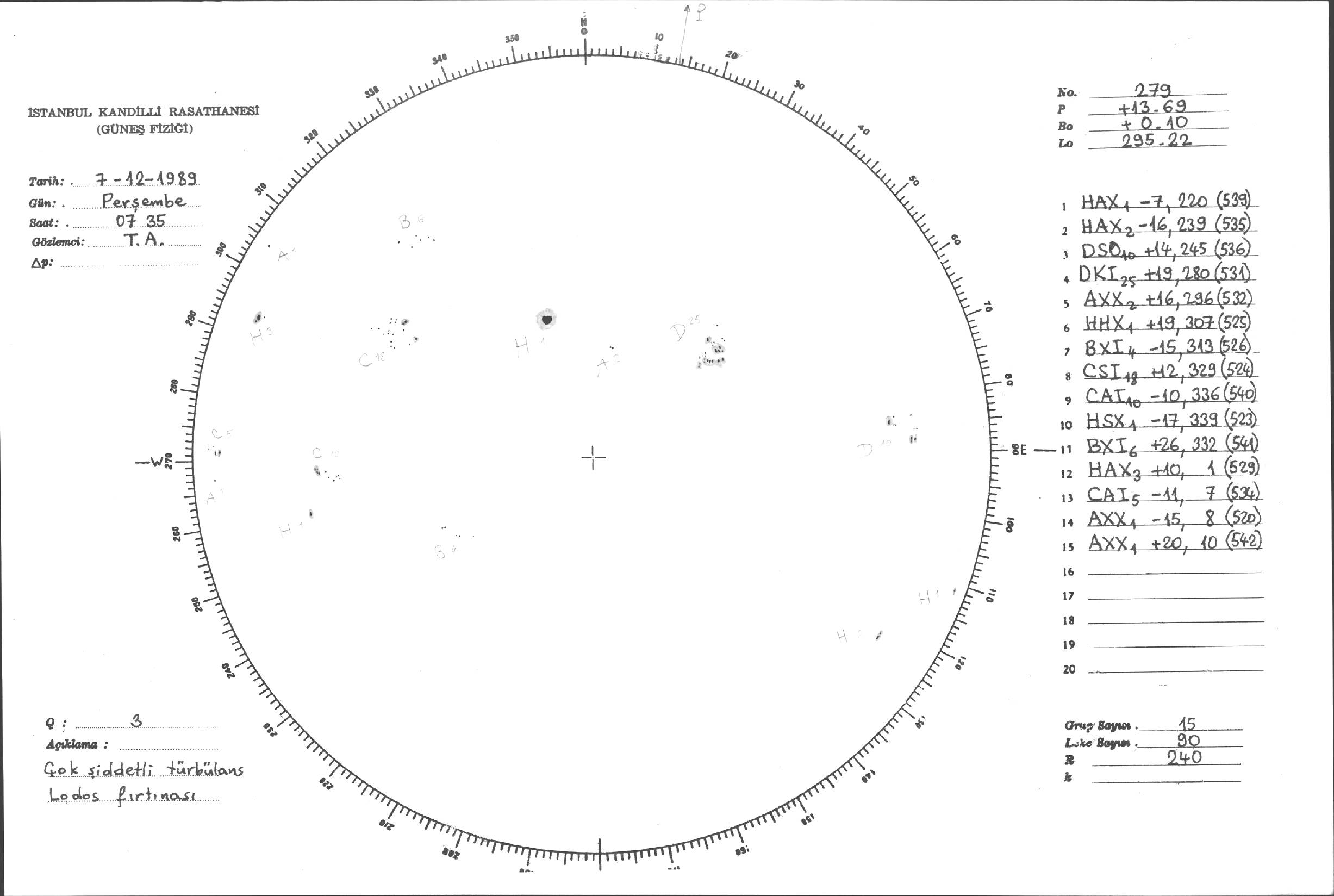 Güneş Lekesi Çizimi - 07.12.1989