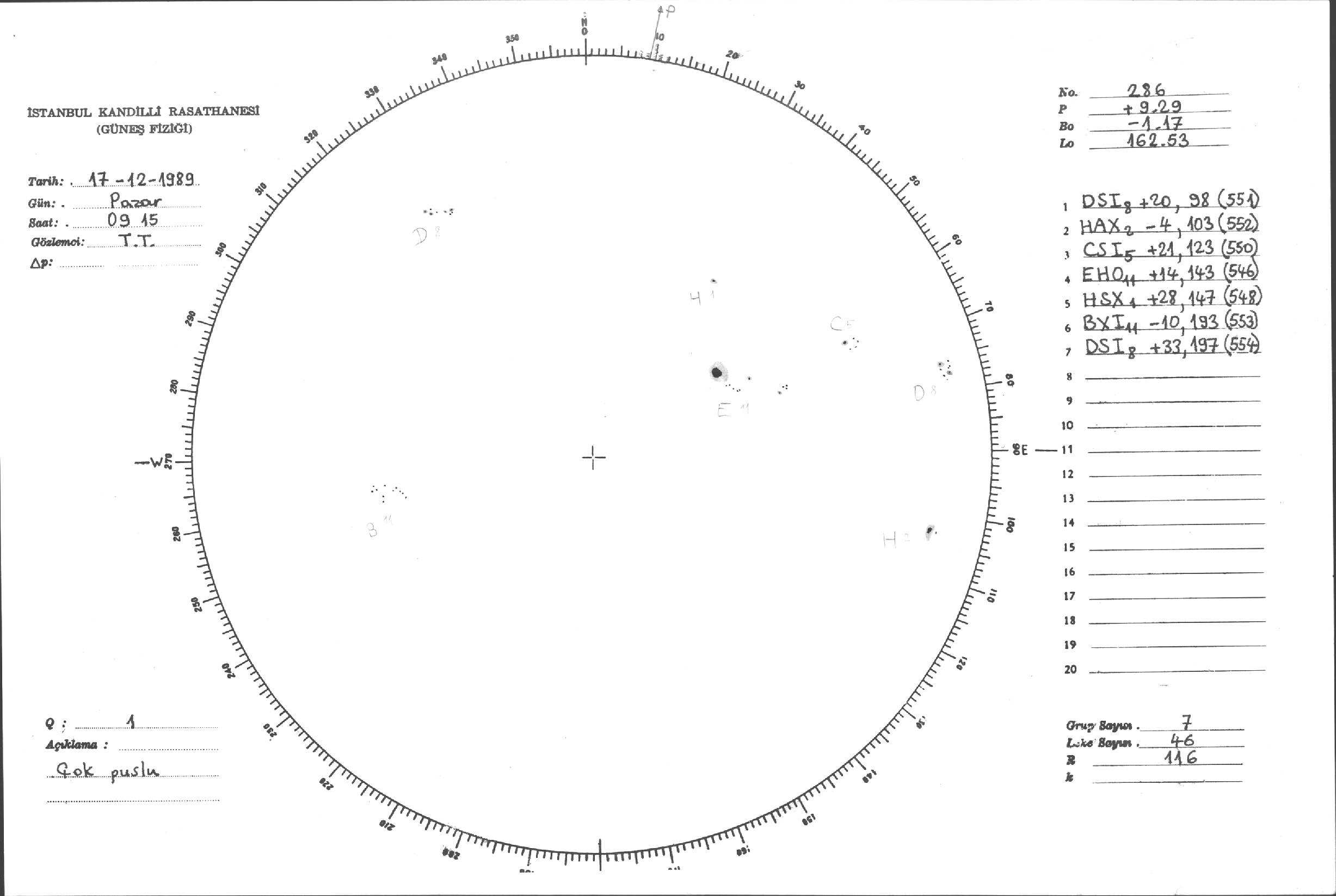 Güneş Lekesi Çizimi - 17.12.1989