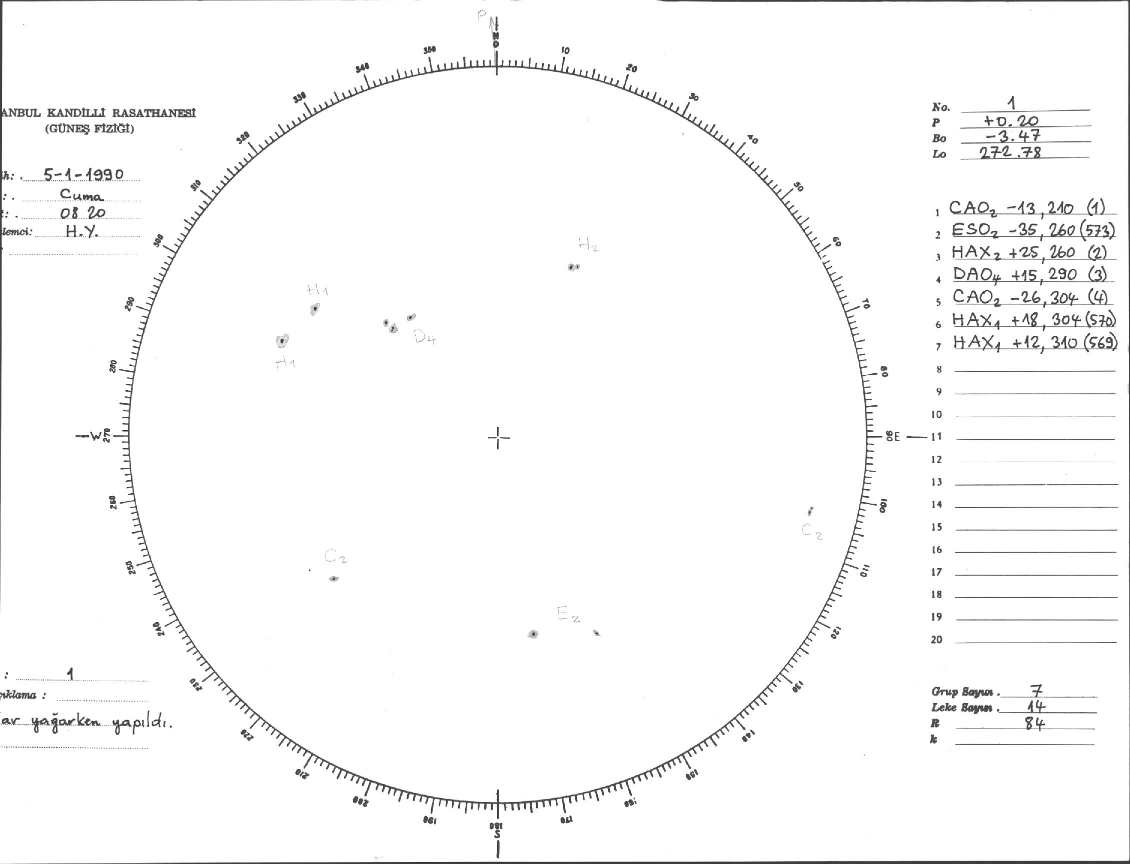 Güneş Lekesi Çizimi - 05.01.1990