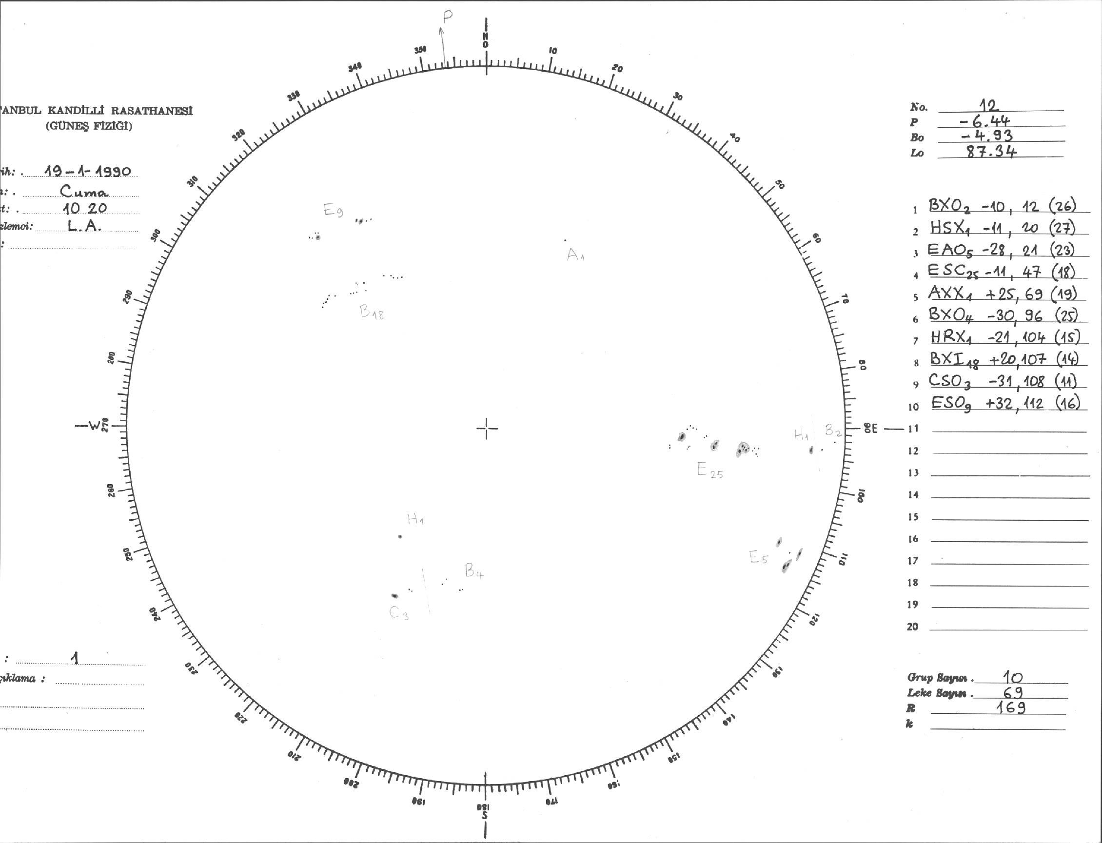 Güneş Lekesi Çizimi - 19.01.1990
